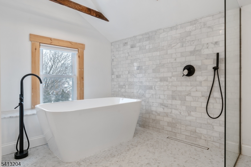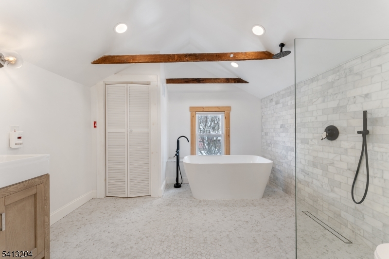 Welcome to this lovely eclectic style colonial home in Bloomfield NJ ! Located on a cul-de-sac street. Close to shops, restaurants & Bloomfield's vibrant center of town! Bloomfield train station is a quick 30 minute train ride to Penn station. Step inside your front foyer with loads of natural lighting beaming through. Living & dining room combo offer a large and spacious open concept with exposed beams offering a lovely natural vibe. Eat in kitchen includes granite countertops, stainless steel appliances and exposed brick. Off the kitchen is another beautiful sunroom space overlooking your backyard with access to driveway/ yard. Second floor includes 3 bedrooms & main bath. Primary bedroom is located on the third floor with high ceilings and exposed beams. A large, lovely primary bath with soaker tub, and open concept shower. Central a/c & forced hot air (2022). Sump pump & French drain (2023) transferable warranty included through installation company. Leased solar panels (2023) GSMLS 4011240