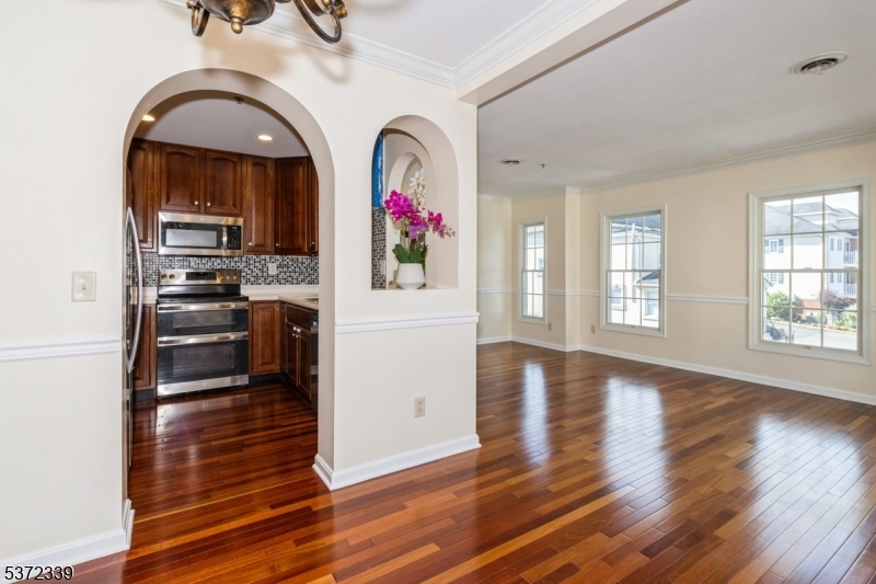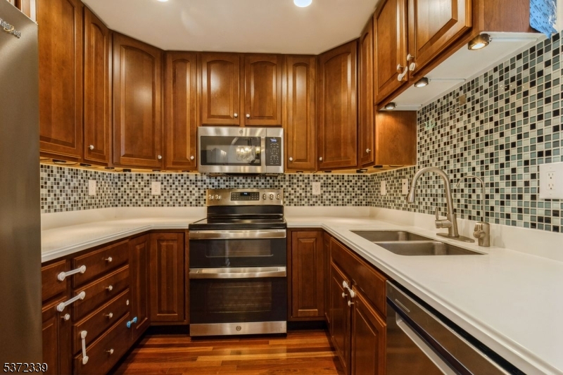 Welcome to this beautifully maintained and sought-after "Grover Cleveland end-unit townhome offering three levels of comfortable living. The main level features gleaming hardwood floors, an updated kitchen with brand-new refrigerator and dishwasher, a dining area, spacious living room with gas fireplace, powder room, and ample storage. Upstairs, enjoy a large family room with private covered balcony, laundry with cabinetry and counter space, and a generous primary suite with two closets, double vanities, jetted tub, and stall shower. A second bedroom and full bath complete the level. The finished basement provides flexible space ideal for a home office or entertainment. The attached garage features newly painted walls and floor, plus a Tesla charger. Additional highlights include a freshly painted interior and a whole-house water softener (owned). Prime location near NYC bus, shopping, dining, parks, and recreation. GSMLS 4004690