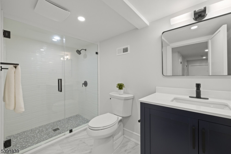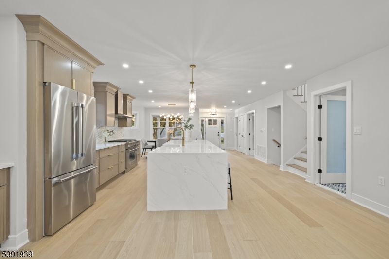 Almost all Brand NEW! Expanded & renovated from top to bottom, inside & outside. Close in early December & spend the holidays in your 'new' home. Charming yet sophisticated, 4BR, 4.5 bath Colonial featuring 4 levels of living space & approx 3,000 sq ft. Open floor plan offers eat-in kitchen/living rm/dining area at the heart of the house, 1st flr laundry, living rm w/gas fireplace, built-ins & XO beverage cooler. Seamless flow to deck (BBQ gas line underneath) & private yard w/new sod and tall trees + wood fence along the rear. Enjoy 2-tone Fabuwood soft-closing cabinets w/polished brass hardware, Quartz countertops, decorative tile backsplash, all stainless Thermador appliances, include 6-burner gas range, large center island w/ room for 5 stools, Andersen windows throughout, gorgeous wide plank oak hardwd flrs, sleek recessed lighting & handsome light fixtures, luxurious baths w/3 frameless glass doors & tasteful hardware. Primary bath w/rainhead shower & sprayer. One car detached garage will have a new door & electric opener w/keypad. Maintenance free living, all new Hardie plank siding, Timberline roof, new driveway, 2 zone heat/air & 3 possible work from home offices on 1st, 3rd & bsmt levels, or 2 can be bedrooms. Perfectly located on a cul-de-sac just moments from downtown Chatham's shops and restaurants, and .6 of a mile to the train station for effortless NYC commuting. Taxes to be updated. Short walk to River Rd in Summit on the path at the end of the cul-de-sac. GSMLS 3995291