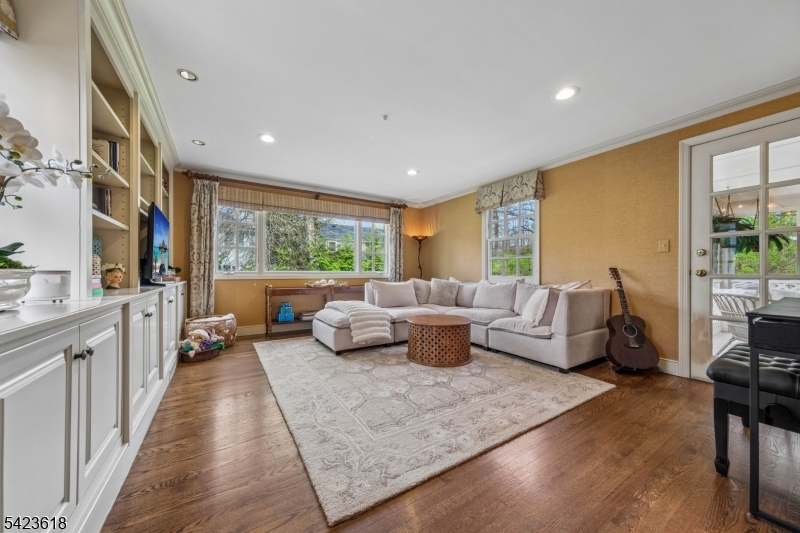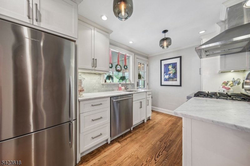 Tucked away on a cozy cul-de-sac in one of Chatham Borough's most sought-after neighborhoods, this cherished home blends classic charm with thoughtful, designer updates throughout. Natural light fills every room, highlighting beautiful hardwood floors and a seamless flow perfect for both relaxed living and entertaining.The stunning kitchen features white marble countertops, white cabinetry, and high-end stainless steel appliances. Morning light graces the elegant living room with its beautiful fireplace, while glowing sunsets fill the family room with custom built-ins. Three bedrooms, 1.5 baths, and a finished basement round out the interior. Step outside to a screened porch, back patio, and a tranquil backyard retreat with mature plantings, ideal for serene evenings. Just steps to top-rated Chatham schools, the train, and town. This one checks every box. GSMLS 4021733