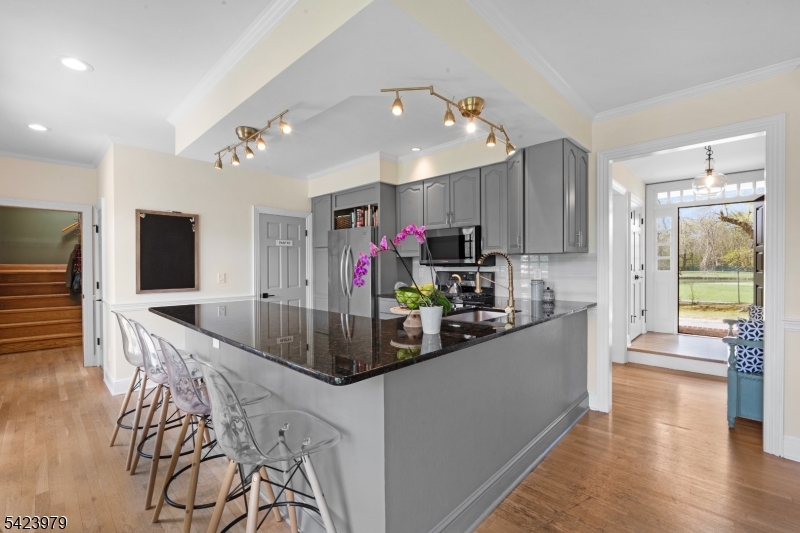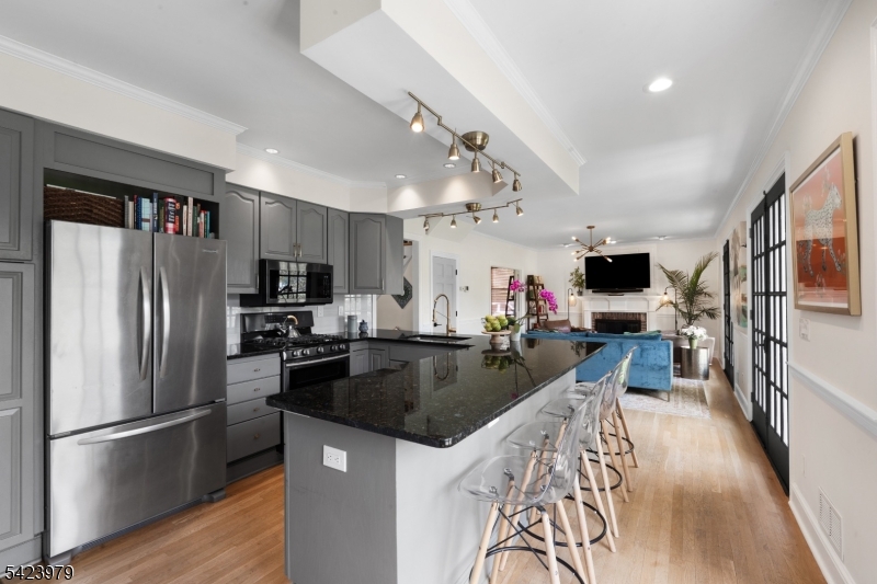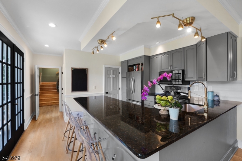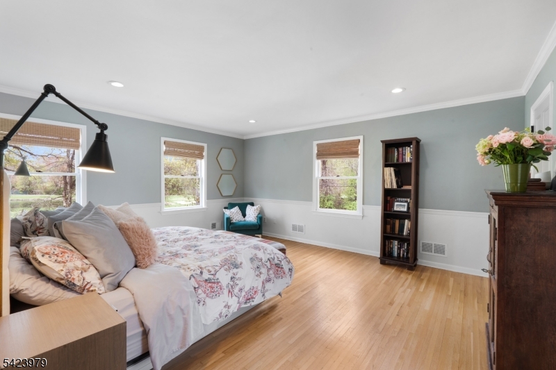 Welcome to "Lake View"- a flawless three-story lakeside Custom Colonial that personifies grace & practicality- brimming with special design features & expert craftsmanship - sited at the very end of Lake Road in the coveted Sunset Lake section of Chatham Twp with scenic lake, golf course, and park views from every room. 12 rooms including 6 bedrooms, 5 full baths, newly renovated powder room, 2 fireplaces, & many coveted features including rich custom millworker, stylish lighting, volume ceilings, abundant closets, specialty windows including skylights, wainscoting & refinished hardwood flooring throughout; gorgeous designer kitchen has custom cabinetry, granite countertops, newer stainless steel appliances, breakfast bar w galley seating & walk-in pantry; open floor plan gathering room features gas fireplace, wall of windows w views of Sunset Lake extending into adjoining kitchen, & easy access to patio. handsome den/home office, tasteful dining room w views of golf course; service area w mudroom & door to garage or rear yard; lovely powder room & discreet access to guest suite with full bath. 2nd floor features 3 spacious bedrooms & 2 full baths including primary suite, 3rd floor offers 2 additional bedrooms and full bath. The upper 3 floors offer 3,030 sq ft plus there is a sprawling finished lower level w full bath. 2-car attached garage, Telsa EV charger, public utilities, new roof, footpath to Castle Park, steps to Hickory Tree Shopping Center& walk to train GSMLS 4022473
