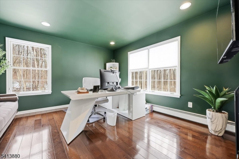 Set at the end of a cul-de-sac in one of Chester's most desirable neighborhoods, this inviting Center Hall Colonial truly offers it all. Upon entry, you're welcomed by hardwood floors that extend throughout the home, creating a seamless and timeless feel. The stunning, sun-drenched two-story great room is anchored by a newly added, highly efficient wood-burning stove which serves as a warm and impressive focal point. The eat-in kitchen opens to a spacious deck overlooking a private backyard bordered by state-owned land, offering a rare sense of tranquility. The main level also features a formal living room, dining room, expansive office, full bath, and a laundry room with separate entry for added convenience. Upstairs, you'll find four bedrooms, including a generously sized primary suite complete with a walk-in closet, private bath featuring a pedestal tub and stall shower and a unique leisure room overlooking the great room below a perfect reading nook or fitness space. A full unfinished walkout basement provides exceptional potential for future living space and connects to the oversized two-car garage equipped with EV charging.Located just minutes from charming downtown shops, restaurants, major highways, and award-winning schools, this exceptional home delivers privacy, space, and convenience in one of Morris County's most desirable communities. The home is being sold as-is. GSMLS 4012319