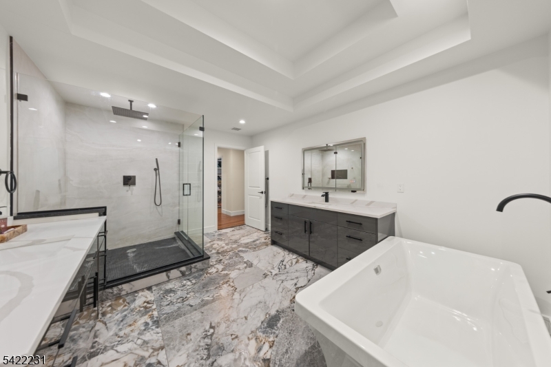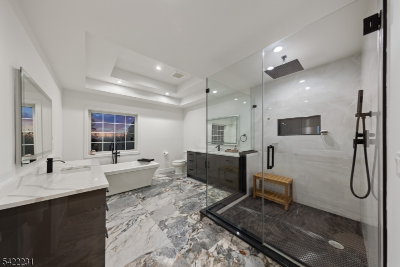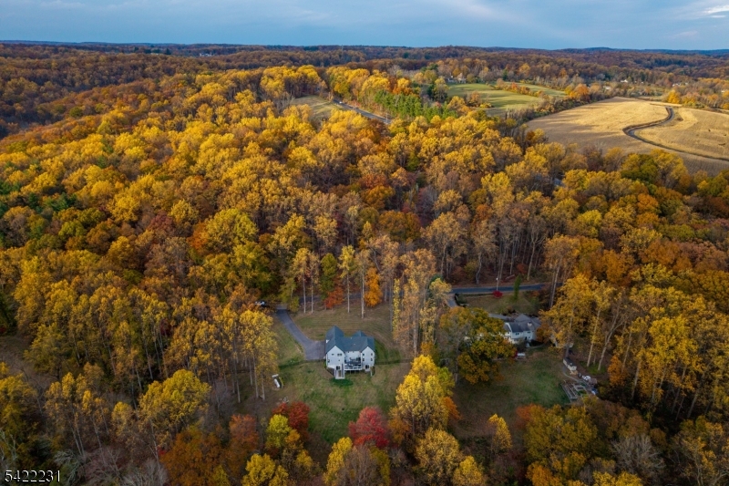 Set on nearly seven private acres in Chester, this 2023-built residence delivers a true lifestyle property where luxury meets land. Surrounded by mature woods with established trails, the setting invites riding, exploring, and complete privacy just minutes from town and access to top-rated schools. A classic center hall colonial layout is immediately apparent, with a formal living room and formal dining room on either side of the entry. The home opens into a light-filled great room with soaring two-story ceilings and a statement fireplace, seamlessly connected to a designer kitchen with quartz surfaces, custom cabinetry, and stainless appliances. Above, an open overlook balcony adds architectural interest and provides a view into the main living space. The layout is ideal for both everyday living and entertaining. A convenient side-door entry leads into a practical mudroom area with built-in organization. Upstairs, all four bedrooms are thoughtfully positioned, including a stunning primary suite with cathedral ceilings, dual walk-in closets, and a spa-caliber bath with radiant heated floors, soaking tub, and oversized shower. Every bathroom features high-end tilework and radiant heat. The brand new walkout lower level adds additional living space with a full gym, built in bar, and flexible recreation area. Outside, the grounds are open and usable, previously home to an in-ground pool, offering a proven pool site for future plans. GSMLS 4020140