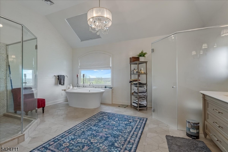 This refined residence, set on 4.21 acres in one of Chester's most coveted neighborhoods, provides sweeping views as far as the eye can see, creating a sense of awe, but also peace & warmth. The thoughtful layout supports both everyday living & entertaining w/ equal ease. A grand mahogany front door opens to interiors rich in architectural detail, including vaulted ceilings, custom molding & 5 fireplaces. The dramatic 2-story great room anchors the main living level, while the updated kitchen, equipped w/ high-end appliances, connects seamlessly to gathering spaces designed for both casual use & formal occasions. A private office w/ 2 sets of French doors, custom bookcases & FP provides an elegant & quiet workspace. Five bedrooms & 5.1 baths include a first-floor en suite bedroom & an exceptional primary suite on the second level, w/ a private sitting room featuring a FP & wet bar, a spacious bedroom, a spa-inspired bath & an expansive WIC. An additional en suite bedroom offers its own distinctive presence w/ an updated bath, large custom WIC & coordinated chandelier detailing. The finished lower level expands the living experience w/ a spacious recreation room, sitting room w/ FP, exercise room, home theater, full bath, & walkout access to a wide slate patio. Add'l outdoor spaces are equally compelling, highlighted by a beautiful Ipe deck overlooking the landscaped grounds & valley, an entrance fountain, a garden sitting area & a paver-lined driveway w/ generous parking. GSMLS 4022337