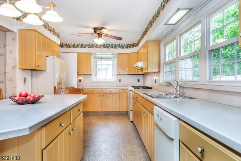 Welcome to this SPACIOUS, EXPANDED front and back dormered cape... Approx 1939sq.ft of space will satisfy all your needs...Many Upgrades over the years with features that include a LR with Wood Burning FRPL and DR that opens into a HUGE, bright and airy 23'x10' MEIK expansion with center island, tons of cabinets, counter space, SKYLIGHT plus PATIO doors to COVERED deck overlooking the PRIVATE yard...the 2nd level open space offers terrific POTENTIAL for CONVERSION to a 4th BR or REC room with office...currently features a huge closet 11'x3'...Highlights include a large unfinished walk-in attic, updated windows, baths, roof...Garage converted to convenient laundry room and added storage...this sought after location only blocks to NYC bus as well as Rt.3, 46, GSP , retail stores and restaurants. HOME WARRANTY included for peace of mind. Don't miss this opportunity! GSMLS 3992743