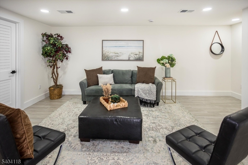 This spectacularly expanded residence has been meticulously renovated with exceptional attention to detail throughout. The modern open-concept floor plan is highlighted by beautiful oak floors, abundant natural light, and a seamless connection between the spacious living and dining areas. The expansive kitchen overlooks the main living space and features a sleek modern electric fireplace, creating a warm yet contemporary ambiance. A well-appointed first-floor bedroom with a private en-suite bath offers flexibility for guests, complemented by an elegant powder room on the main level. The second floor is anchored by a generously sized primary suite showcasing winter skyline views of New York City and a luxurious spa-inspired bath with a soaking tub and oversized glass-enclosed shower. Three additional well-proportioned bedrooms and a stunning hall bath complete this level. The lower level offers a large family or recreation room, utility space, and walkout access to a beautifully designed, mostly covered patio overlooking the yard. Truly move-in ready, this home reflects thoughtful craftsmanship and refined finishes at every turn. GSMLS 4004051