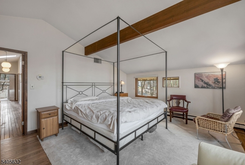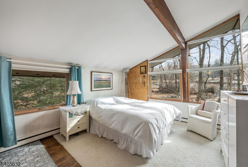 Prime East Hill location on approximately 2.25 acres, offering exceptional privacy and a serene, natural setting. Set back over 485 feet between two farms, this remarkable property feels like a private retreat while being just minutes from the GW Bridge. The sun-filled 4-bedroom, 2.5-bath contemporary chalet-style home features abundant natural light streaming through newer windows and open, flowing living spaces. The main level includes a living room with wood-burning fireplace, kitchen, dining room, family room, powder room, laundry room, and a recently rebuilt sunroom. A large deck off the living room overlooks the picturesque grounds. The second floor offers four bedrooms and two full baths, including a primary suite, along with two walk-in closets. Move-in condition with numerous updates, including newer roof, windows, air conditioning system, drainage, and underground sprinklers. Additional features include multi-zone baseboard heat, central air, and a two-car garage. Ideally located near Closter's award-winning schools, vibrant downtown, nature center, library, recreation programs, and more. A truly rare offering. GSMLS 4005080