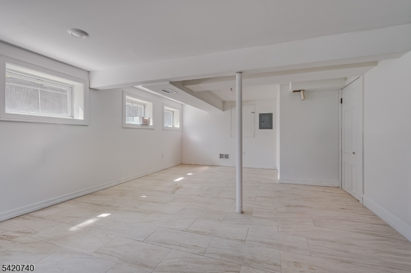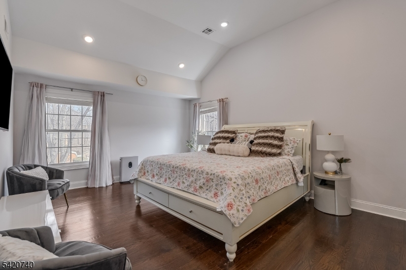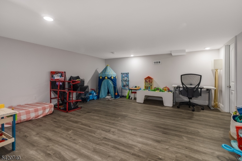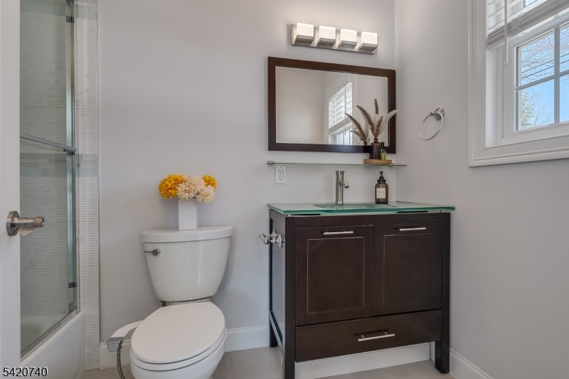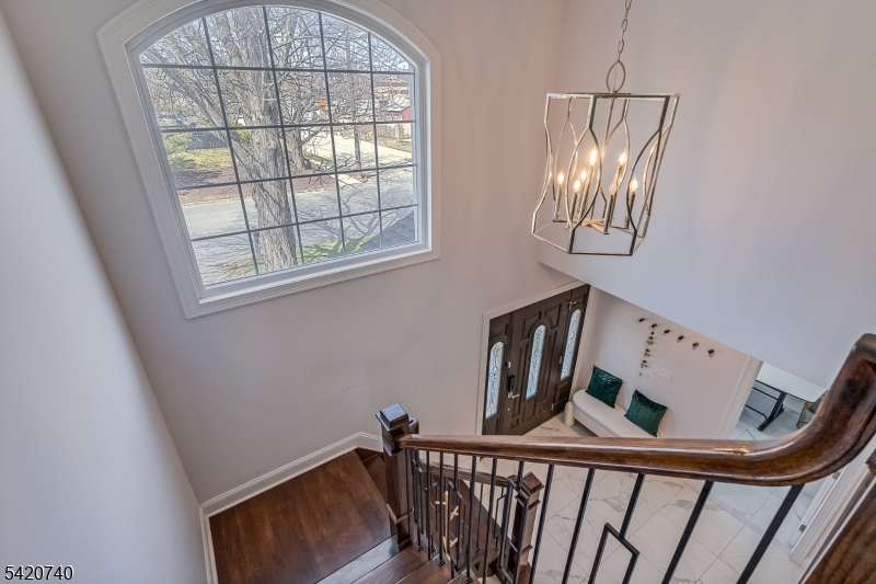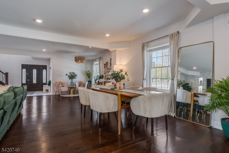 Spectacular in-town location steps from downtown Denville and NJ Transit train station! Fully renovated home in 2022 with all the bells and whistles! Two story entry wows you as soon as you open the door! 3581 sq feet of bright open floor plan where both entertaining and living is so easy! Living area opens to dining and chef-worthy custom kitchen with custom white cabinetry. Stunning huge custom contrasting breakfast bar/center island with quartz countertops, double ovens, beverage refrigerator, Viking and Thermador stainless appliances and glass tile backsplash. Modern electric fireplace surrounded by a mosaic backdrop, cathedral ceilings, LED lighting, hardwood floors, huge pantry. First floor office with glass door and private en-suite bedroom overlooking private yard and patio. Second level offers luxurious primary suite with soaking tub and oversized shower. Another en-suite, two additional bedrooms and a hall full bath await.. Access to two lower level areas. Outside gives storage and access inside lends a rec room and utilities. Fenced yard with paver patio, stucco facade. Ideally located within easy walking distance of the train station on a quiet dead end street, this desirable corner lot home offers a safe, traffic-free environment, abundant natural light, expanded outdoor space, and quick access to the I-80 highway, shopping, and amenities, perfect for commuters and city getaways. It's a home run! Inground pool needs work and will convey "as is" GSMLS 4017748