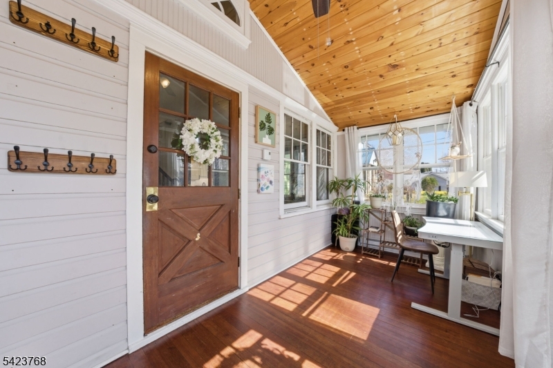 Charming 3 bdrm, 2 full bath Cape lake home in Denville's sought after Indian Lake community, blending timeless character with thoughtful updates. This inviting home showcases hardwood floors, exposed beams, custom built-ins, rich wood trim, & a painted white brick wood-burning fireplace that anchors the cozy living space. The updated kitchen features white cabinetry & flows effortlessly for everyday living & entertaining into the dining room. A sun drenched enclosed front porch with cedar ceiling & beadboard paneling offers the perfect place to relax & unwind. Enjoy additional living space in the full walkout basement with family room, storage, & direct access to a patio. Outdoor living shines with a large deck, fenced level yard, storage shed, & a stunning stone outdoor fireplace ideal for entertaining or peaceful evenings. Eastern front-facing orientation provides beautiful natural light, along with sunset & lake views. Major updates include a brand new gas boiler and kitchen remodel. A long driveway offers ample parking. Optional membership to the Indian Lake community provides year round lifestyle amenities including 3 beaches, clubhouse, motor boating, fishing, ice skating, & community events. Conveniently located within walking distance to Franklin Rd beach & just minutes to DWTN Denville's shops, restaurants, & vibrant events, plus NJ Transit trains, NYC bus access, & major hwys, perfect for commuters seeking charm, convenience, & lake living. Flex zone for Elementary GSMLS 4020212