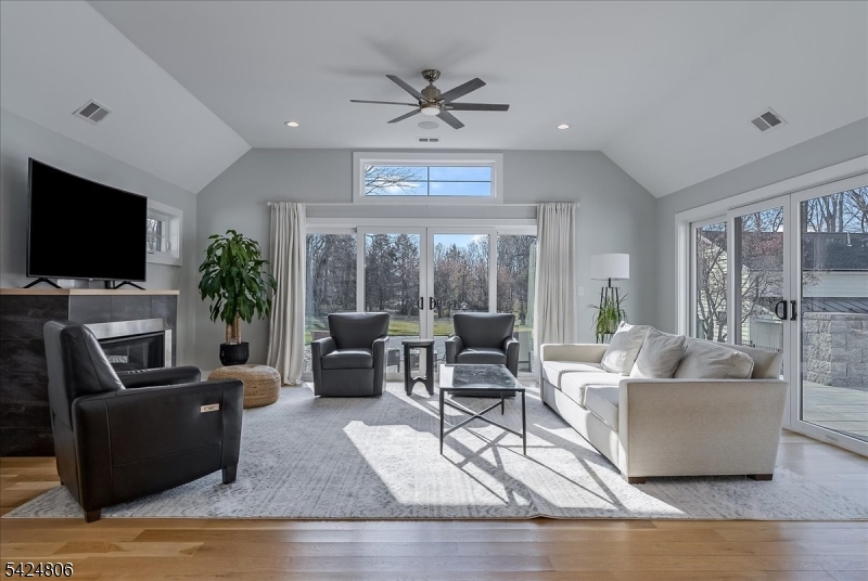 Set on just under 2 acres in one of Denville's most convenient locations, this property offers a rare balance of privacy and proximity- tucked away, yet moments to everything. Thoughtfully renovated + reimagined in 2022, the property is anchored by a custom 4,100sf home, a furnished 1,400sf carriage house and a resort-style outdoor setting. The home features a first-floor primary suite, open concept floorplan where the gourmet kitchen connects seamlessly w/sunken living room, dining/living room spaces, HW flooring, 3 gas fireplaces and 3 car garage. Designed for seamless indoor-outdoor living, the family room features 10-foot center- opening sliders that lead directly to the expansive tiered paver patio. Plenty of entertaining and relaxation space outside whether you're ready to jump in the kidney-shaped heated saltwater pool or unwind by the outdoor WB fireplace w/built in chimney. The carriage house adds another layer of versatility w/ its own 2-car temp-controlled garage, kitchenette, 1.5 baths, W/D, it's ideal as a pool house, private office, or creative studio. Exquisite curb appeal, clean architectural lines, a blend of board and batton with horizontal siding, black framed windows, seam metal roof accents- its dialed in and turnkey for today's luxury buyer. This home is designed for both everyday easy living and elevated entertaining. A setting that feels removed but never disconnected. It delivers space, function and a lifestyle that's rarely available in Denville. GSMLS 4022215