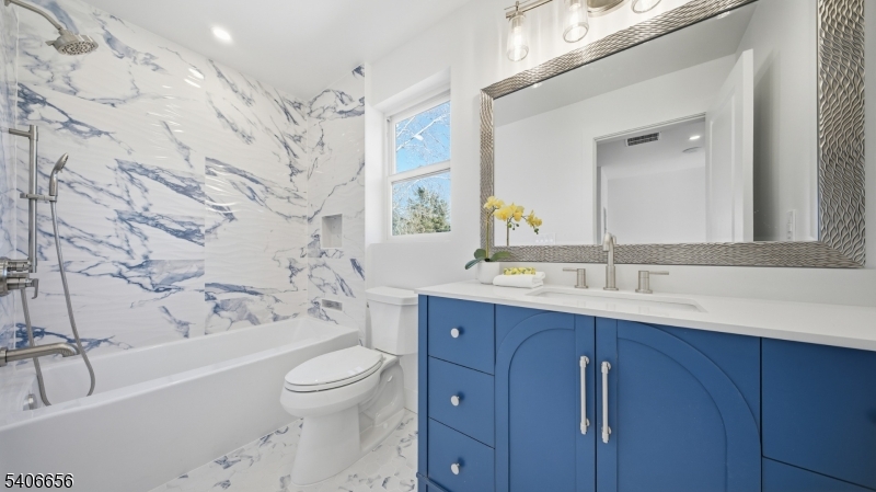 This NEW CONSTRUCTION Colonial is 4 beds 4 full bath and 1 half bath just completed and ready to move in. Hardie Plank exterior, Anderson Windows, paver driveway,paver patio,corner lot with large yard on both sides, 30 year timberline roof, 75 gal water heater, 2 Units 4 zones heat and AC, Smart Home all remotely controlled, speakers to the patio, fireplace in great room with brand new TV, open floor plan, hardwood select floors 3 1/2 wide, 9 foot ceilings, water purification system for drinking water,1 car garage with 10 foot door, large driveway 32 feet, laundry on 2nd floor, all Jenn Air appliances, Quartz counters, double sliders to paver patio, 2 electric panels, primary has WIC and large full bath and extra closet, 3rd floor bonus with full bath, basement has full bath, Across the street from highly ranked Essex Fells School... Just move in and enjoy GSMLS 4005807
