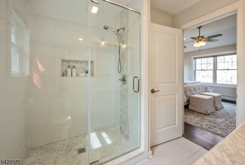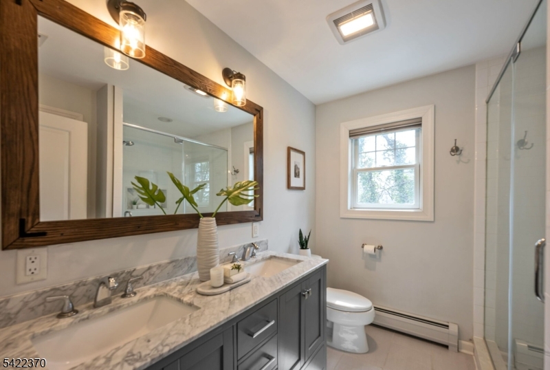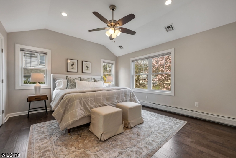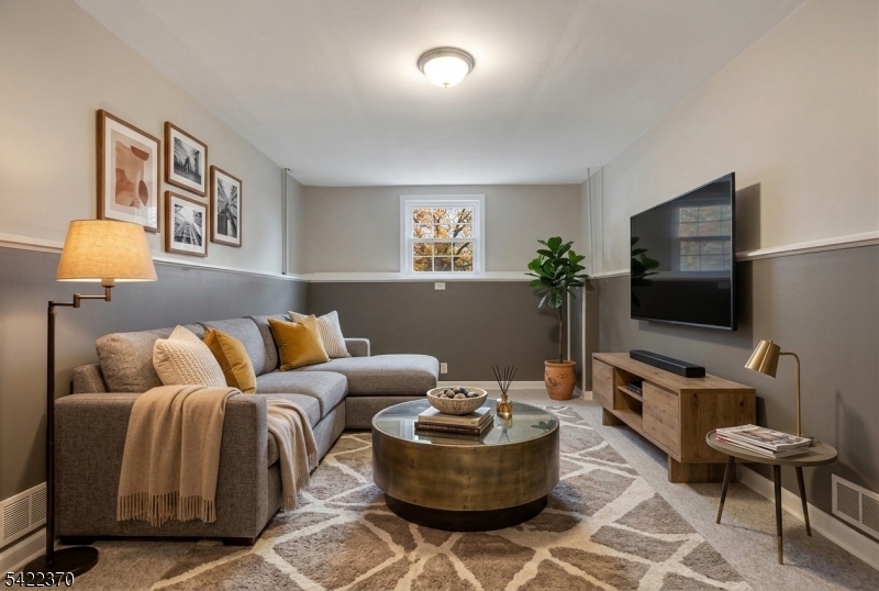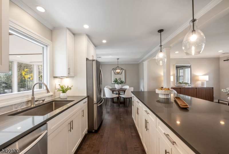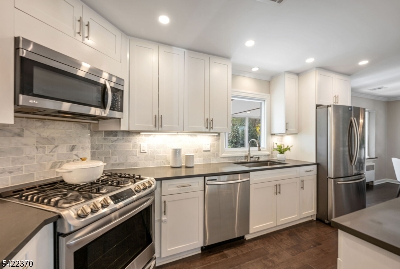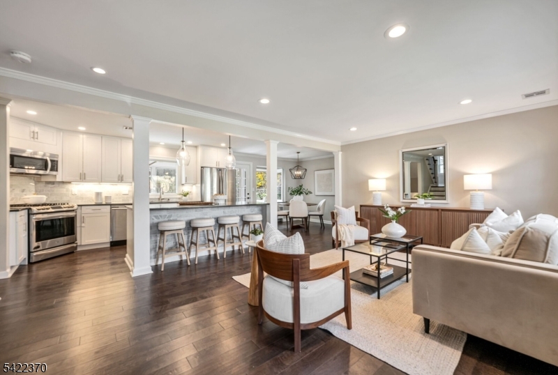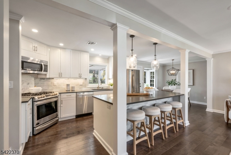 Welcome to this beautiful and fully renovated home, where thoughtful design meets everyday functionality. Nestled in a quiet setting, this home offers the perfect blend of open-concept living and a quiet retreat, all within minutes of schools, parks, and easy NYC transportation. The main level boasts a light-filled living room and a gourmet eat-in kitchen featuring a large center island, sleek quartz countertops and stainless-steel appliances. The open dining area flows through into a charming three-season porch, perfect for enjoying the private backyard. Just a few steps down, the finished lower level offers a family room, convenient powder room and a functional mudroom with custom built-ins. Nearby oversized garage with abundant storage space. The 2nd level features 3 spacious bedrooms and a renovated hall bath, while the 3rd floor serves as a primary retreat with soaring vaulted ceilings, 2 custom walk-in closets, an ensuite bath with double vanities and a separate laundry room. This is one you will want to call home. Nothing to do but unpack! GSMLS 4019184