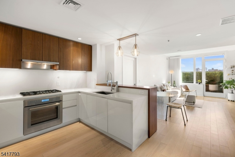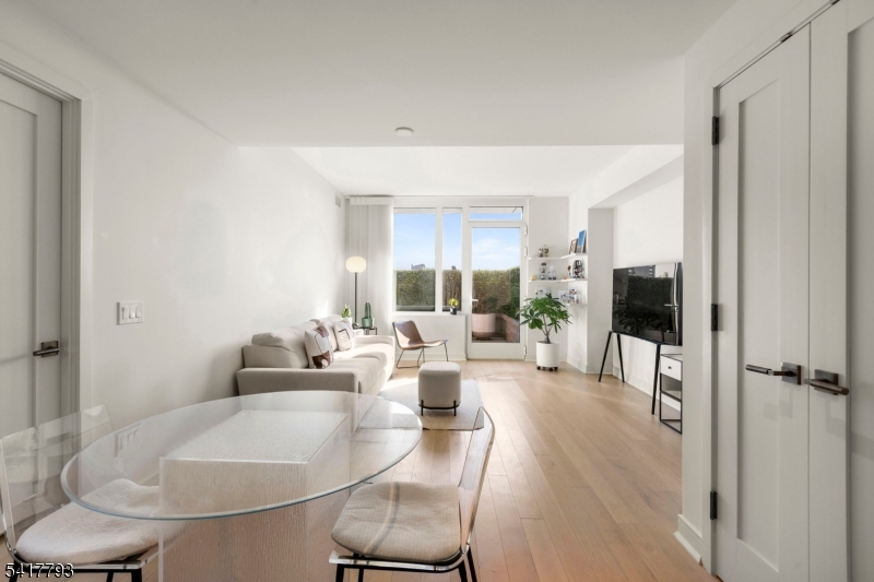 Incredible South-facing 2 bed/2 bath with extremely rare patio in the luxury community of 1000 Maxwell, Toll Brothers' newest Hoboken building. The chef's kitchen includes stainless steel appliances, breakfast bar, quartz countertops, and custom-built modern waterfall walnut cabinetry. The spacious living space has an entrance to the private patio, one of only two in the entire building. The primary bedroom features a large walk-in closet and spa-like ensuite bathroom. Rounding out this incredible home is a spacious secondary bedroom, additional full bathroom, gleaming hardwood floors, and in-unit washer/dryer. The community's luxury amenities include 24/7 concierge and security, a gym, pool, playroom, rooftop deck with BBQ grills, community room, and shuttle service to and from the Path. The building is conveniently located near the NYC Ferry, bus stop, shops, restaurants, and everything that uptown Hoboken has to offer. GSMLS 4015168