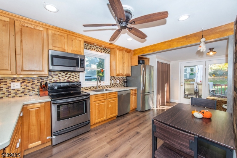 Discover this charming 2-bedroom, 1-bathroom ranch featuring a bright and sunny open floor plan with gleaming hardwood floors throughout. The updated eat-in kitchen offers plenty of cabinet space, stainless steel appliances and direct access to a spacious backyard deck, perfect for entertaining. The first-floor primary bedroom and convenient laundry closet adds everyday ease. Enjoy outdoor living in the beautifully landscaped backyard complete with a paver patio and a dedicated playground area ideal for relaxation or recreation. This cozy home blends comfort, style, and functionality in a sought-after setting. Ideally located close to shopping, schools, restaurants, major commuter routes, and just minutes from Hopatcong State Park, this delightful home offers comfort, style, and unbeatable convenience. - Highest & Best due Wednesday, October 15th at 12:00pm GSMLS 3991943
