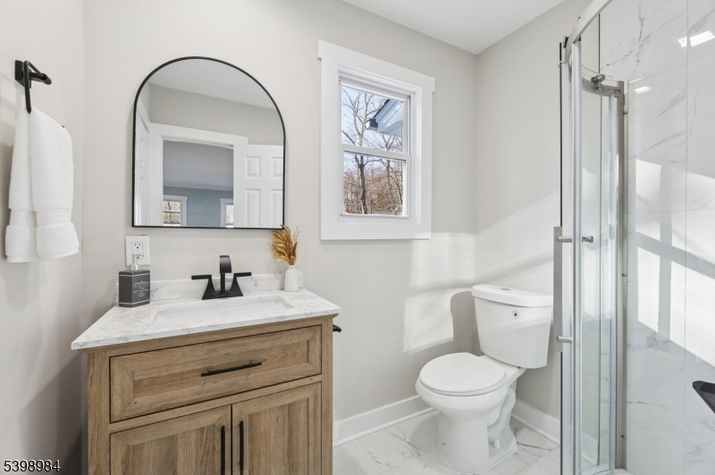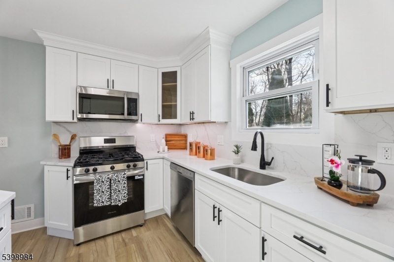 Step into this fully renovated ranch offering modern finishes and comfortable one-floor living. The home features recessed lighting and LVP luxury vinyl plank flooring throughout, durable, stylish, and fully waterproof. With 3 bedrooms and 2 full baths, this home provides both comfort and practicality.The kitchen stands out with quartz countertops and a matching quartz backsplash, complemented by clean white cabinetry and a separate dining area. Both bathrooms include stall showers, and the home offers an unfinished basement for additional storage or future customization.Enjoy outdoor living on the deck overlooking a spacious backyard, with additional parking and an attached 1-car garage. The property is serviced by a private well.Major upgrades provide peace of mind, including a brand-new septic system to be installed before closing, natural gas to be connected before closing, a new HVAC system, new water heater, new roof, and new siding.Located in the desirable Hopatcong Heights neighborhood, this move-in-ready home combines comfort, style, and high-quality upgrades, don't miss the opportunity to make it yours! GSMLS 3999430