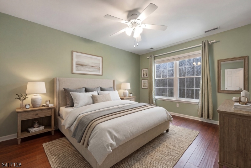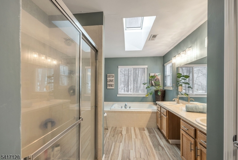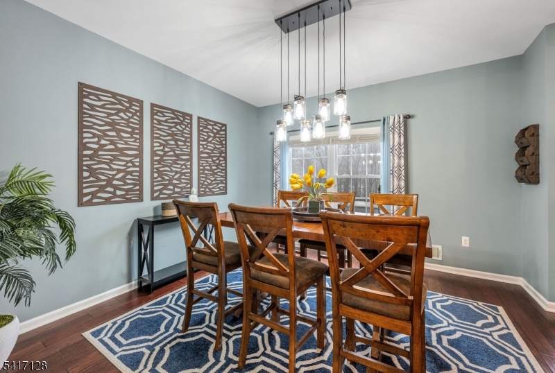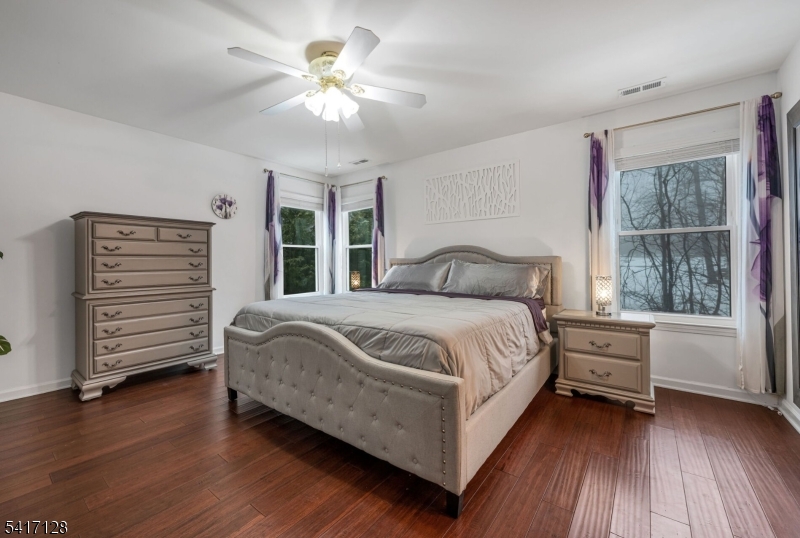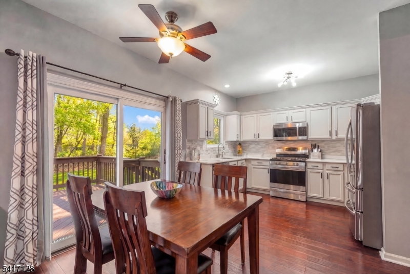 Location means everything and now your home search ends here! WELCOME to this beautifully designed and fully updated Colonial, situated on perhaps one of the most tranquil streets of THE PEAKS in Morris County. Move right in and enjoy the summer in your new home situated on a cul de sac surrounded by wooded privacy in the front and back. Be impressed by the recent high end upgrades here: NEW ROOF 2019, NEW WINDOWS 2023, NEW HOT WATER HEATER 2024 & NEW HVAC UNIT 2025. Step inside to a spacious newly painted OPEN FLOOR PLAN with elegant wide planked chestnut hardwood throughout the first level. Sunny kitchen shows off white cabinetry, designer quartz countertops, stainless appliances, large pantry and new glass sliders to deck. Convenient garage entry leads to laundry/mud room. Cozy wood burning fireplace is the centerpiece of the family room. Primary bedroom suite features dual walk-in closets and ensuite bath with skylite, dual sinks, soaking tub and shower. Second level displays rich wood laminate flooring throughout (no carpet to rip out!). Relax and have fun in the modernized basement, with luxury vinyl flooring and flex space for entertainment and storage. Enjoy the beauty of nature outside on the large newly repainted deck with Sunsetter retractable awning, paver patio and leveled fully fenced yard with backyard storage shed. PUBLIC UTILITIES are here, for worry free living year round. Close to all major roads, schools, shopping, lake activities and an easy NYC commute. GSMLS 4014883
