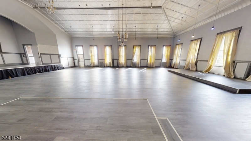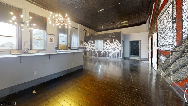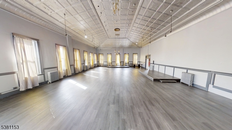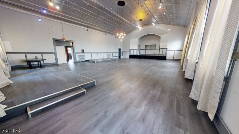 AMAZING SPACE, Very Unique. Classical Ballroom so many options. Check the Virtual Tour This expansive 4140 sq. ft. space occupies the 3rd floor of the building in Kearny. This space offers a unique blend of historic character & modern functionality. The space can be divided to suit individual tenants needs or it can be rented as 1. (Pending zoning approval for each individual use.)The centerpiece is a grand hall with a stunning ornate tin ceiling, arched entryways, and a stage area. Large windows flood the space w/ natural light, while elegant chandeliers provide ambient illumination. The hallway is very wide with wood-look flooring.Adjacent rooms showcase an eclectic mix of design elements.. New tenant can paint or make changes to suit their needs.The property includes 2 updated bathrooms with modern fixtures, marble-look tile flooring, and sleek finishes. Some smaller rooms feature vintage radiators and charming window treatments, preserving the building's historical essence.Throughout the space, high ceilings and exposed ductwork lend an industrial feel, while carefully preserved architectural details like decorative moldings add refinement. The juxtaposition of old and new creates a unique ambiance, making this space suitable for a wide range of purposes, looking for a creative mind.Tenant to goto the Zoning / Building Dept before submitting application. Tenant Must provide a personal background check, business and personal returns GSMLS 3985198