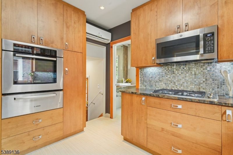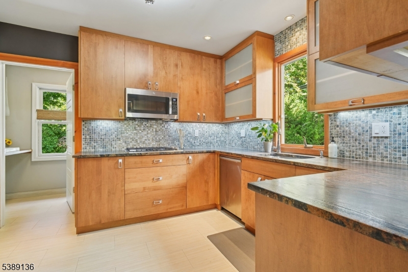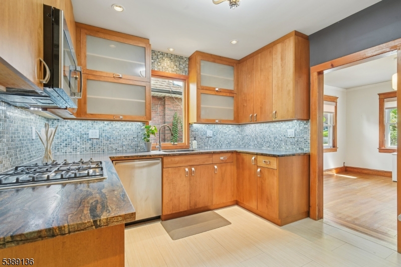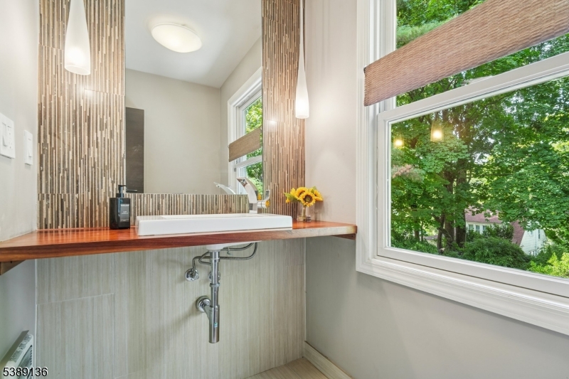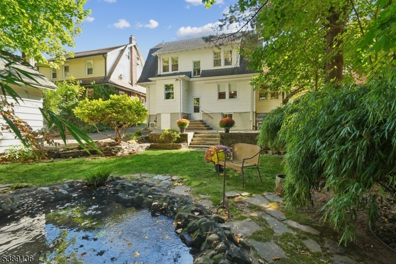Welcome to this timeless east hill Colonial with craftsman touches & tasteful modern updates. Approach on blue stone walkway to entry portico w/ sidelights & transom. First floor w/ inlaid hard wood floors offers foyer with closet, airy living room w/ wood burning fireplace, french doors leading to sun room, formal dining room w/ leaded glass window, custom kitchen w/ Bosch & GE appliances, granite counters, ceramic floor & glass tile backsplash. Powder room completes the first floor. Continue to second fl via embellished stairs to primary bedroom with two closets, full bath, linen closet, and two more spacious bedrooms. Lower level has bedroom, full bath, recreation room, storage room, bonus room, utility, and laundry. Relax in terraced private yard with serene Koi pond & expansive patio with gas hook up for grill, ideal for entertaining. Long driveway with dedicated EV charge outlet leads to detached garage with new windows and bike racks accessible w/keypad opener. Convenient to public transit, 3 miles to Manhattan & steps to everything the sweet town of Leonia offers. GSMLS 3991613
