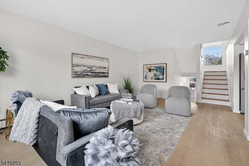 Welcome to this adorable and charming townhouse offering comfortable, easy living in a well-maintained complex close to shopping. This light-filled home features beautiful views from the large windows and skylights that bring in an abundance of natural light throughout the living spaces. The recently updated living room, dining area, and kitchen are complemented by brand-new high-end appliances. The flexible layout includes a den/office plus two bedrooms and two fully updated bathrooms and half on the ground floor. Laundry in the unit. Attached garage for convenience. Bright, inviting, and thoughtfully updated, this home is ideal for both everyday living and entertaining. Conveniently located close to shopping, public transportation on the corner 1 block away going into NY, schools, and houses of worship. Sellers never had flooding or water issues however insurance might require flood insurance. Please note window hardware will be replaced. GSMLS 4013009