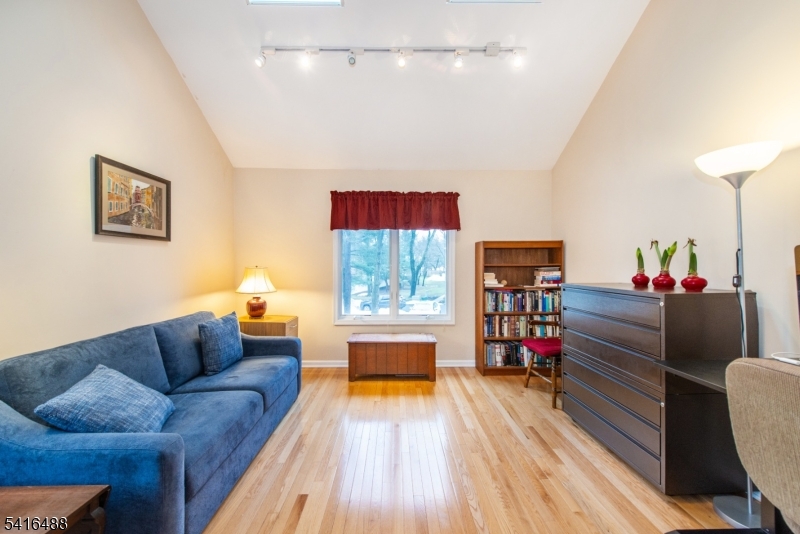Welcome to this well-maintained and bright condo located in a quiet area of the complex. The home features vaulted ceilings, skylights, and large windows that fill the space with natural light. The main level offers a comfortable open living and dining area with hardwood floors, creating an inviting space for everyday living and entertaining. Living room includes a charming fireplace feature with potential for restoration; façade update required for code compliance. The kitchen provides excellent functionality and storage, along with a convenient in-unit laundry room. The layout includes one spacious bedroom and a versatile loft, ideal for a home office, guest area, or additional living space. Enjoy two full bathrooms, including one with a stall shower, as well as large walk-in closets and additional storage throughout the home. Step outside to a covered balcony, perfect for relaxing and enjoying the peaceful surroundings. Additional highlights include a spacious one-car garage plus an additional parking space, and tennis court access within the community. Ideally located near the town center off Main Street, this home is near shops, restaurants, and public transportation to NYC, with easy access to Route 46 and just minutes from Montclair and Upper Montclair. GSMLS 4013938