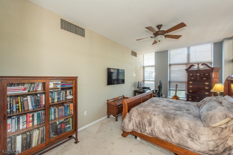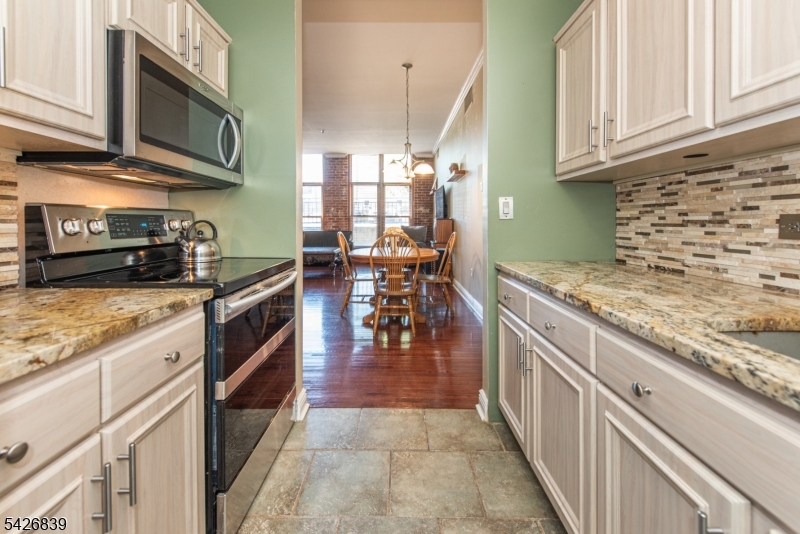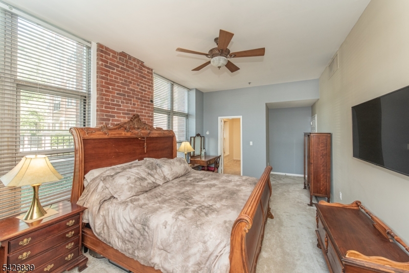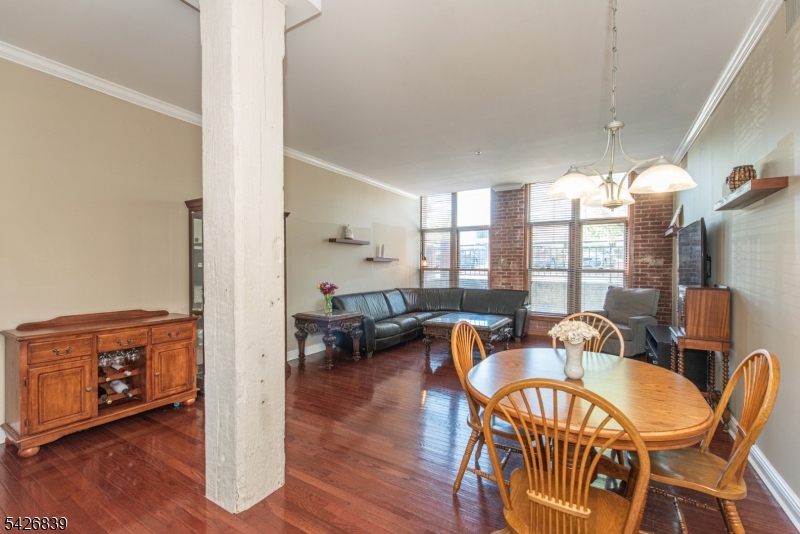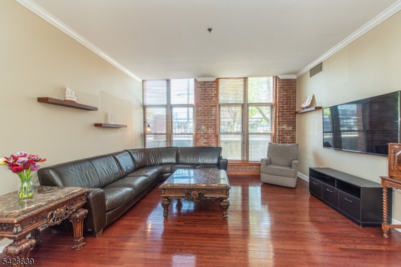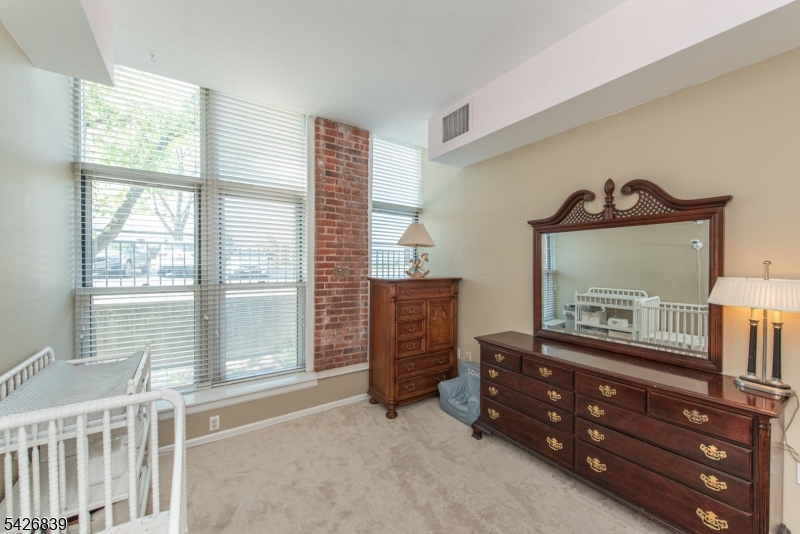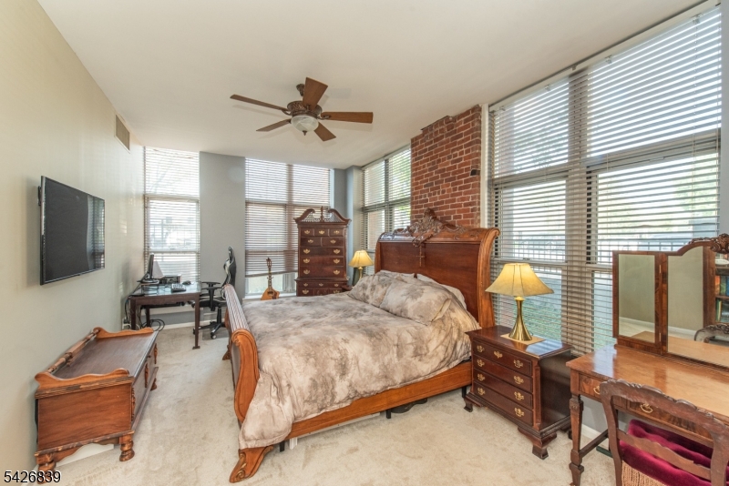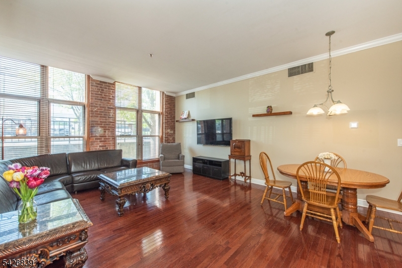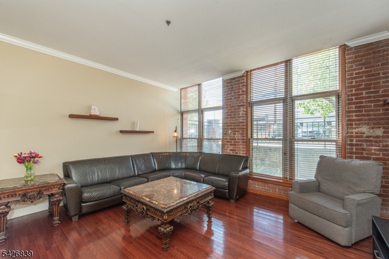 High ceilings, exposed brick, and a wall of oversized windows set the tone the moment you walk in. This first-floor corner unit features an open living and dining area with rich hardwood floors and a clean, expansive layout that feels both flexible and intentional. Natural light pours in from multiple exposures, highlighting the brick accents and adding depth throughout the space. The kitchen is finished with light wood cabinetry, granite countertops, and a full-height tile backsplash, offering a polished and functional setup. The primary bedroom carries through the same signature elements with tall windows, exposed brick, and a well-balanced layout, complete with a private en-suite bath and an oversized walk-in closet so large it could easily function as a separate room or home office. The secondary bedroom offers a similar aesthetic with great light, brick detail, another walk-in closet, and a comfortable, versatile footprint. In-unit washer and dryer! Residents of The Mill enjoy an array of amenities, including a state-of-the-art fitness center, a renovated community room, tennis courts, an in-ground swimming pool, scenic walking and jogging paths, and the plaza deck overlooking the waterfalls. Located near shops, restaurants, and NJ Transit bus and train options, this community offers easy access to NYC and Hoboken, making it a strong option for commuters seeking space, character, and convenience. GSMLS 4023719