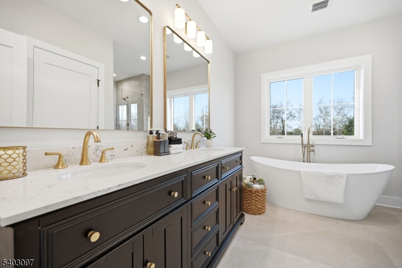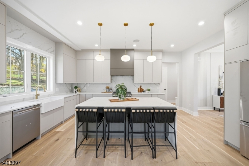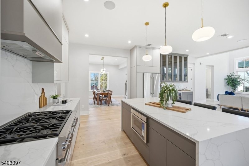 Welcome to this stunning 6-bed, 5.5-bath custom new construction home offering approx. 4,800+ sq ft of finished living space across 3 expansive levels, ideally situated on a 0.36 acre lot.. The main floor is thoughtfully designed for modern living & entertaining, with a Covered Front porch entry into a dramatic 2-story foyer. Wide-plank floors & detailed custom trim set the tone throughout. The formal dining room flows seamlessly into the chef's kitchen, featuring high-end stainless steel appliances, quartz countertops, a center island with seating, and a walk-in pantry. The open-concept layout continues into the spacious Family room with 20ft ceilings anchored by a dramatic electric fireplace & sliders open to a paved patio, a private guest suite w/ full bath, mudroom, powder room & convenient access to a two-car garage. Upstairs, the luxurious primary suite serves as a peaceful retreat with a private balcony, large designer WIC, & a spa-like bath feat. double vanities, a soaking tub, glass-enclosed shower. Two out of the three additional bedrooms are en-suite, each w/ custom WIC; a laundry room with built-in cabinetry & sink for added convenience. The fully finished basement offers a large recreation room with a Wet Bar, media room, Exercise/Gym/Office room, 6th bedroom, full bath, & ample storage. 10-Year Builder's Warranty GSMLS 4002812