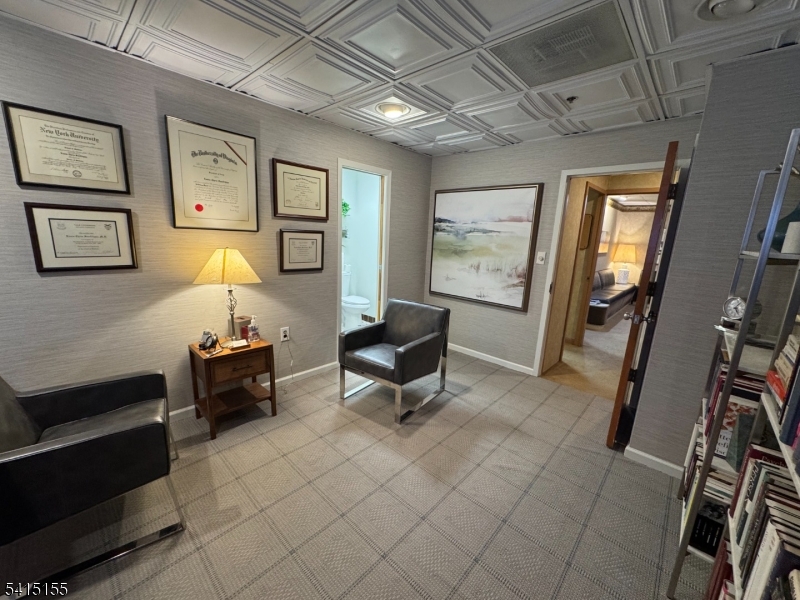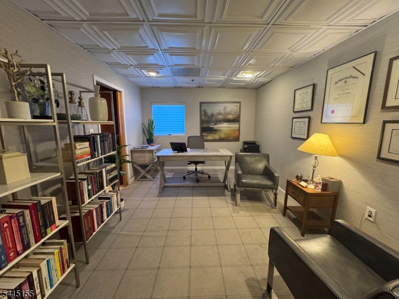 Rare turn-Key Medical Office in Livingston. This beautifully maintained space features three private exam/consultation rooms plus a spacious conference room or library, complete with built-in bookshelves that create a warm, professional atmosphere ideal for meetings, research, or quiet work.The welcoming reception area and front desk flow seamlessly into a bright waiting room with custom built-in benches, offering both comfort and style for patients. Two bathrooms provide convenience for staff and visitors.Additional highlights include basement storage and two reserved covered physician parking spaces a rare and valuable amenity.Perfectly located just minutes from Saint Barnabas Medical Center and Summit Medical Urgent Care, with easy access to major highways and the Short Hills and Millburn train stations, making commuting simple for both staff and patients.A rare opportunity to establish or expand your practice in a prime, highly accessible medical corridor. GSMLS 4012849