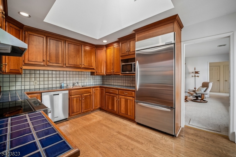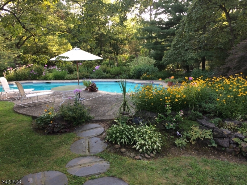 This ranch-style home delivers single-floor living with an easy, comfortable flow. Natural light fills the main level throughout. The spacious living room is the heart of the home -- knotty pine highlights the wood-burning fireplace, and there are picture windows on all sides. The family room sits adjacent to the kitchen with another large picture window perfectly framed for backyard birdwatching. The kitchen features new stainless steel appliances and a coffee bar. Steps away, a sun-drenched sunroom overlooks the gorgeous backyard -- an ideal breakfast room and morning retreat. The primary suite addition offers direct backyard access, generous closet space, and room to unwind. Two additional bedrooms and a full bath round out the single-level footprint. The in-ground pool anchors an outdoor space built for dining, lounging, and gardening. The finished lower level includes a rec room with built-in shelving, a workshop, laundry room, and a potting shed. The two-car garage adds everyday convenience. Located in Millington (Long Hill Township, Morris County, NJ), minutes from the Great Swamp National Wildlife Refuge, major roadways, shopping, and the Millington NJ Transit Station -- a direct line to Summit and New York Penn Station. Key features: ranch, single-floor living, family room, stainless appliances, coffee bar, sunroom, primary suite addition, in-ground pool, wood-burning fireplace, finished lower level, two-car garage, Millington NJ Transit. GSMLS 4021259