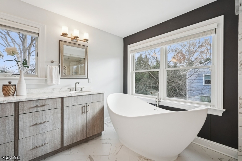 Elevated luxury living in one of Madison's premier neighborhoods. This 2017 turnkey residence is ideally positioned just a short walk to downtown Madison, offering a rare combination of location, craftsmanship, and lifestyle. Designed with refined architectural detail and high-end finishes throughout, the home features Plain & Fancy handcrafted cabinetry, an expansive 8.5-foot center island, Sub-Zero and Wolf appliances, a sun-filled breakfast area, and a butler's pantry with dual refrigerators perfect for everyday living and upscale entertaining. Open-concept interiors flow seamlessly across gorgeous wood floors, offering 4/5 bedrooms, 4.1 baths, and over 4,100 square feet of thoughtfully designed living space. The primary suite serves as a private retreat, complete with a spa-inspired bath, sitting area, and a generous walk-in closet. A wired third level provides exceptional potential for future finishing. The fully finished walk-out lower level offers remarkable versatility and can be enjoyed as a private guest suite or a spacious recreation and media level, featuring a full bath and second mudroom. Additional luxury highlights include two gas fireplaces, coffered ceilings, custom millwork, heated bathroom floors, generator HU, EV charging station, and a custom fenced vegetable/herb garden. Ideally located just blocks from Madisons vibrant down-town, top-rated schools and NJ Transit with direct service to NYC. Fireplace/chimneys being sold "as-is". w/no known issues. GSMLS 4006661