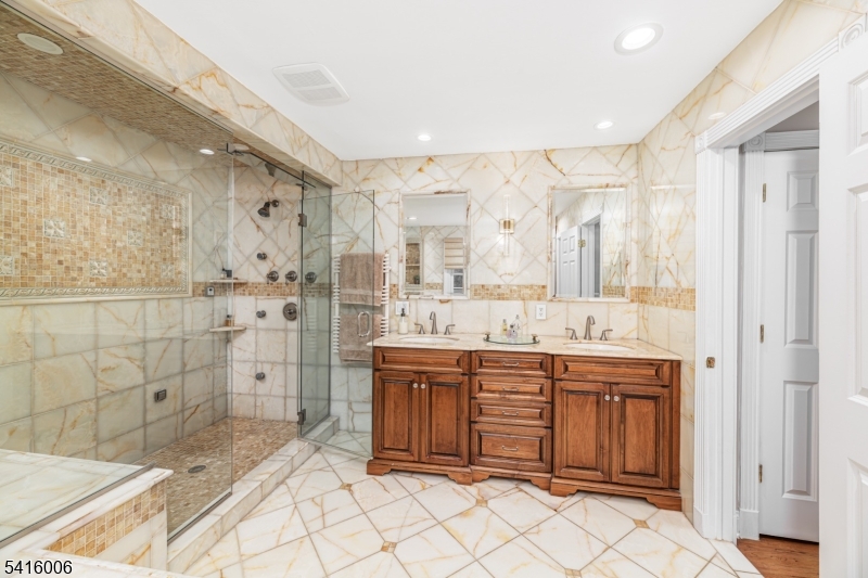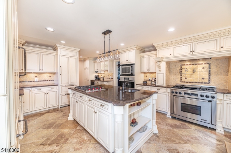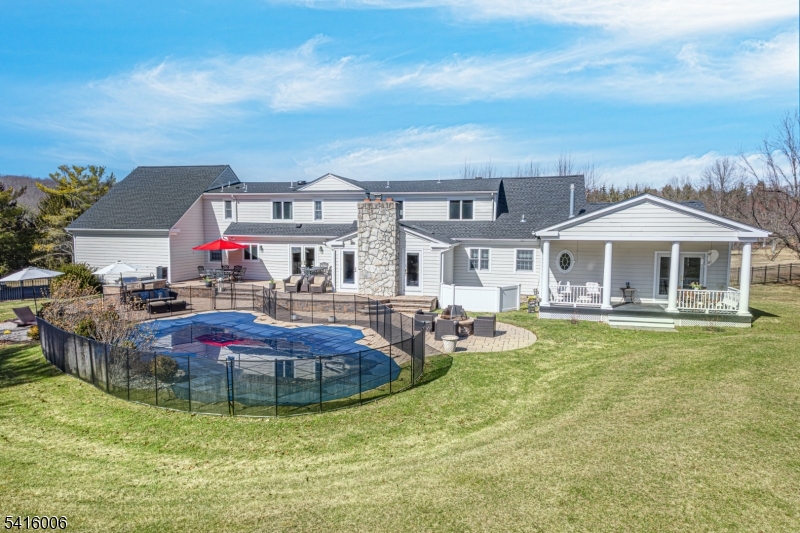 Nestled on 5 sprawling, private acres in one of Mendham borough's most sought after neighborhoods is this opulent custom colonial blending country living with modern finishes. This 5400 sq. ft. 5 bedroom spectacular home has been expertly renovated and maintained by the current owners. A long circular drive leads to the manicured property with mature trees and specimen plantings. Step inside the grand foyer with stone inlay and rounded columns to explore the beauty of this home. The 2 story living room boasts architectural moldings and details. A dramatic arched palladian window offers an abundance of natural light and stunning views. The formal dining room hosts your largest gathering and is christened with a spectacular crystal chandelier. Beyond is the designer kitchen and breakfast room, with creamy cabinetry, premium finishes and appliances. On this floor you'll find a cozy family room with gas fireplace and built in wet bar in addition to a dramatic library/offfice with coffered ceiling which provides a private entry to the primary suite. The sweeping primary suite has vaulted ceilings, a gas fireplace and a private covered patio. The adjoining bath is fitted with white onyx, his and her vanities, a soaking tub and a steam shower. Upstairs are 4 additional bedrooms, a large sitting room and two recently renovated baths. Outdoors your private oasis awaits with a sparkling inground pool, spa, fire pit and built in kitchen. NEW 5Bd Septic, NEW Roof. GSMLS 4015545