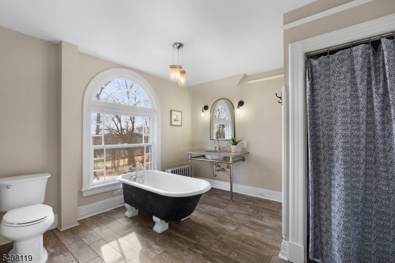 Stunning, beautifully renovated circa 1888 Queen Anne Victorian-replete with welcoming 1,670 sq. ft. wraparound front porch, asymmetrical exterior designs employing stone & patterned shingles, steeply pitched rooflines, round & polygon towers, original stained glass windows, & volume ceilings, plus original custom millworker, period doors & hardware, & hardwood flooring throughout--captures the charm & elegance of a bygone era but with all of today/s modern features & conveniences. This majestic home encompasses 4,742 sq. ft. of commodious living space on 3 flowing floors and boasts 14 rooms including 6 airy bedrooms, 3 renovated full baths, updated powder room, with two lovely primary bedroom suite options on separate floors- each with delightful sitting areas and en suite full baths: tasteful living room, open floor plan family room features a sliding glass door to the inviting bluestone patio: renovated designer kitchen boast granite countertops w stainless steel farm sink, custom cabinetry, premium stainless steel appliances including a Thermador six burner gas range with center griddle & 2 ovens, elegant dining room measures 27x14. The second & third floors offer high ceilings 6 bedrooms, 3 full baths, laundry room, home office and exercise room. Fully fenced 4.2 acre pancake flat property w restored 2-story barn, newer 6 bedroom septic system, public water, gas heat from newer boiler, brand new 2-zone central air conditioning (2nd & 3rd floors), plus Verizon Fios. GSMLS 4008570