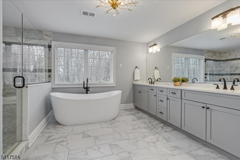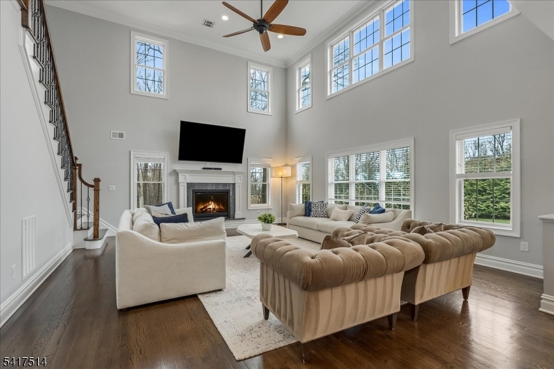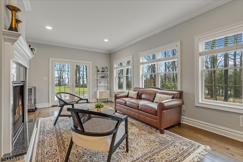 This 5,300-square-foot residence in a premier Brookside, cul-de-sac neighborhood offers a rare opportunity for newer construction on 2.26 gated acres. Enhanced far beyond its 2020 origins, this five-bedroom estate provides a fully self-sustaining, turn-key lifestyle. The open-plan layout features a gourmet kitchen with JennAir appliances opening to the breakfast area and the 2-story great room with a gas fireplace and back staircase. The first floor also includes formal living and dining rooms, a private office, a conservatory/family room with a gas fireplace, and a full guest suite. The primary wing is a true sanctuary, featuring a sitting room with a two-sided fireplace, a spa-caliber bath with radiant flooring, and expansive walk-in closets. The lower level serves as a professional entertainment hub with a media room, exercise area, rec room, and full bath. Outside, the grounds are a private oasis with stunning views featuring a heated saltwater pool with a 40-foot stone patio, a regulation basketball court, and integrated irrigation. Engineered for uninterrupted comfort, the property includes a commercial-grade Generac generator supporting the entire estate. The water system was modernized in 2024/25 with a new well pump and holding tank for peak reliability. Complete with a finished heated four-car garage and a fabulous mudroom. With easy access to NYC transit and 35 minutes to Newark Airport. Highest and best offers due Wednesday, 4/1 at 12:00. GSMLS 4016528