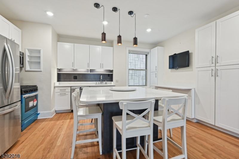 Welcome to this charming 4 Bedroom, 2 Bathroom apartment nestled in a beautiful art-deco building in sought-after Downtown Millburn. Boasting an open floor plan, stunning hardwood floors, spacious Living Room, and a brand new large Kitchen with two-tone cabinets, quartz countertops, and an 8-top center island, the space is perfect for entertaining. Enjoy two-story living with 2 large Bedrooms and a Bathroom on the first level, and 2 Bedrooms on the Lower Level with a finished bathroom, and an additional flex space, accessible via a retro spiral staircase. Convenience is at your fingertips with a laundry room, storage room, and parking onsite available for an additional cost, heat and hot water included, plus a live-in super for all your maintenance needs. This apartment has it all - just one block to Taylor Park, the NYC midtown direct train, top-tier schools, and an amazing downtown! Just unpack and enjoy! GSMLS 3989668