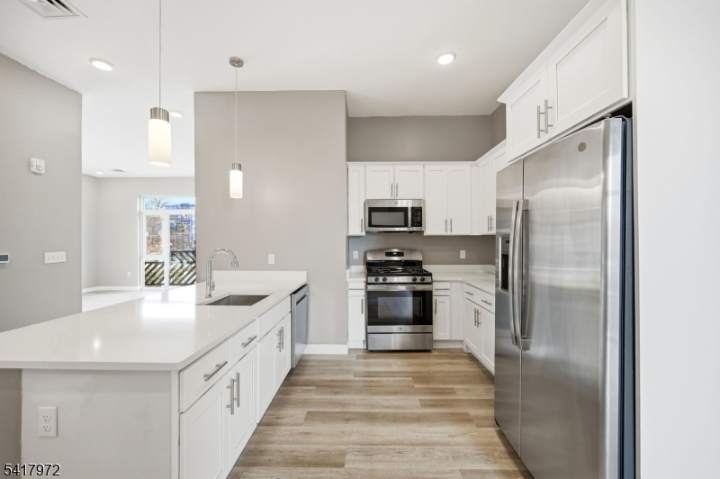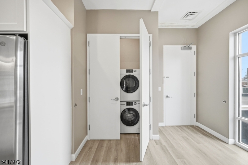 Enjoy convenient in-town living in this beautifully appointed 2-bedroom, 1 full bath apartment located in the heart of Millburn, just moments from train service, local shops, restaurants, and top-rated schools. A welcoming lobby with passenger elevator provides easy access to this second-floor residence. The apartment offers a bright, modern living experience with high ceilings and expansive floor-to-ceiling windows that fill the space with natural light and provide charming street views. The open living area flows into a well-designed galley kitchen featuring quartz countertops, a breakfast bar, white cabinetry, and stainless steel appliances. A stackable washer and dryer add everyday convenience. Both bedrooms are generously sized and feature oversized wardrobe closets, recessed lighting, and large windows that enhance the airy feel throughout. One reserved on-site parking space is included, completing this ideal rental opportunity in a prime Millburn location. Apartment available for immediate occupancy. GSMLS 4016277