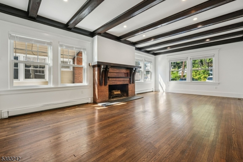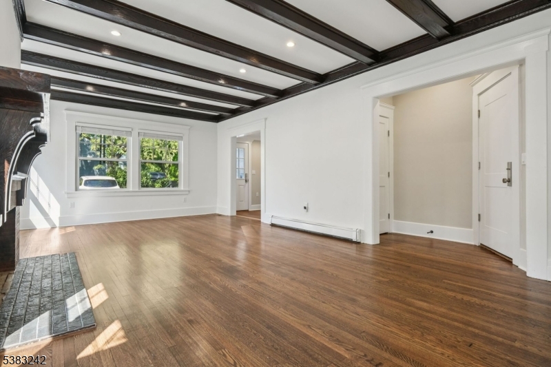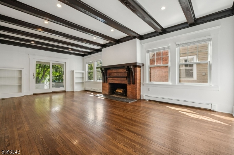 Charming and cozy first floor unit located on one of the most desirable Montclair streets. Completely renovated, unit features open floor plan with beamed ceilings & Custom built-ins, old world charm with modern amenities. Large Living room, Slider doors leading to front private porch, Bright and spacious with lots of windows, hardwood floors. Dining area off Eat-in Kitchen, Stainless steel appliances, pantry with lots of storage, side island, Central Air. First floor also consists of two large bedrooms with California closets, Full Main Bathroom with tub-shower, tiled. Lower level consists of a Recreation room/TV Room/Office, Laundry Room with sink, and storage. Rear entrance access to unit from driveway to kitchen & front porch access. WATER/SEWER INCLUDED IN RENT. Parking for Two cars assigned spots, Yard access and storage shed. Sunny and bright and unbeatable location! Completely painted and move in ready. Close to NYC mid-town direct train and Bus, restaurants, coffee shops. GSMLS 3988045