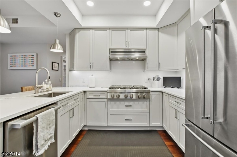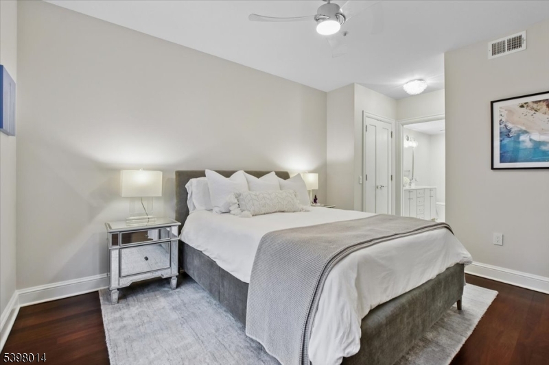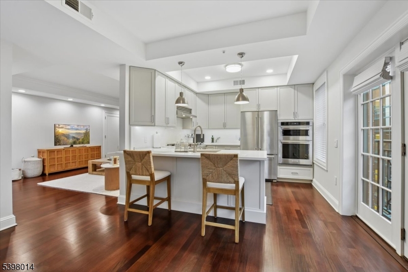Located in Morristown's most coveted downtown address, this fully renovated, move-in-ready 2-bedroom/2-bath corner residence offers sophisticated living in one of the area's only full-service buildings. Perched on the 5th floor and overlooking the courtyard, every detail has been thoughtfully redesigned with a focus on light, high-end finishes and modernization. Throughout the unit, 9-foot ceilings, smart-home features, upgraded electrical and lighting, refinished hardwood flooring and custom window treatments create a light-filled and inviting space for living and entertaining. A private balcony and Juliet balcony make this a unique property not to be missed. The gourmet kitchen has been completely redesigned with new stainless steel appliances, custom cabinetry, new countertops and full backsplash. The spacious primary suite features a walk-in closet, additional linen storage, and a beautifully renovated en-suite bath with an oversized walk-in tile shower and double vanity. The second bedroom is ideal for guests or a home office, with its own renovated full bath. Fully renovated units in this building are rare; here the heavy lifting has been done for you. Enjoy maintenance-free living with premium building amenities: concierge service 365 days/year, secure gated and assigned parking (2 spaces), onsite fitness center and an elegant club and billiards room. All just steps from Morristown's vibrant dining, shopping, the Green, and NYC direct transit. GSMLS 4001512