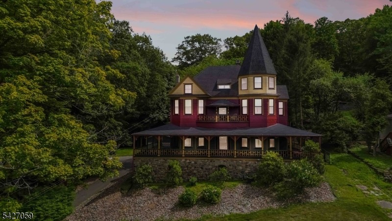 Spectacular Queen Anne Victorian w/Seasonal Panoramic Lake Views Minutes to Lake Hopatcong! Step into timeless elegance with this one-of-a-kind Victorian known as the historic William Arnott House. This architecturally significant home offers a perfect blend of original charm and modern updates. The grand wrap-around porch welcomes you into a gracious entry foyer and exquisite grand oak staircase and fireplace. The formal living and dining rooms both feature dramatic floor-to-ceiling windows and beautiful fireplaces, creating a warm and inviting atmosphere. The beautifully renovated kitchen features a center island, breakfast bar, coffee station, stainless appliances, and a picturesque window overlooking the private backyard. The 2nd floor offers a primary suite complete with an original fireplace, walk-in closet, ensuite bath featuring a walk-in shower and classic clawfoot soaking tub. Two additional spacious bedrooms, full bath and Juliet Balcony complete this level. The 3rd floor provides exceptional versatility w/3 bedrooms, a full bath, a bonus rm and a large storage rm. Outdoors, the fenced yard is an entertainer's paradise with 2 patios, gorgeous inground pool, hardscaping and landscaping, plus detached 2 car garage. This extraordinary home has been lovingly maintained and thoughtfully updated, offering historical character w/modern amenities. Located walking distance to Lake Hopatcong beaches, parks, downtown Mount Arlington this is more than a home, it's a lifestyle! GSMLS 4023187