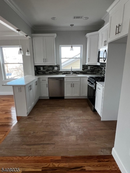 Be the first to enjoy this apartment unit featuring 3 bedrooms and 2 bathrooms with an open-concept living space, rich hardwood floors, recessed lighting, and a cozy modern design concept. The spacious living area is filled with natural light from large windows, while the bedrooms are designed to be bright and comfortable, complete with generous closet space. The primary suite includes a private bath, while the additional bedrooms are generously sized with ample closet space. The kitchen has sleek white cabinetry, quartz countertops, and stainless steel appliances; a center island with breakfast bar seating and elegant pendant lighting offers additional prep space for casual dining and entertainment. Filled with natural light and showcasing a modern aesthetic throughout, this home blends urban sophistication with everyday practicality. Enjoy central air and forced-hot-air heating for year-round. Conveniently located near local amenities, transportation, and major routes, this is a standout opportunity. Come and check out your dream place to be!!! GSMLS 4007721