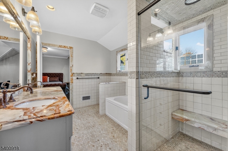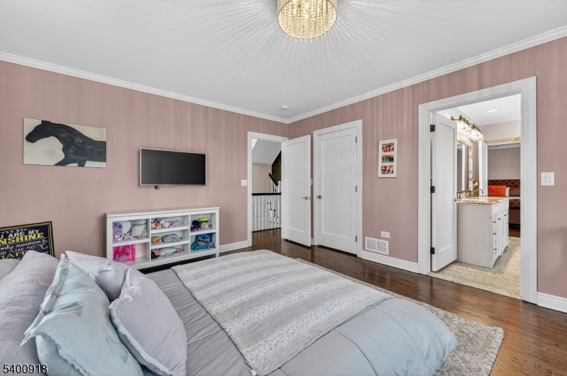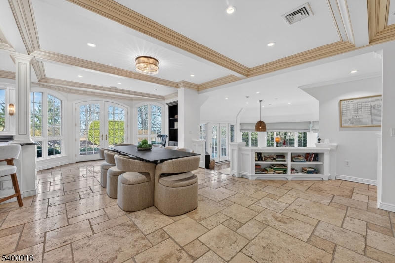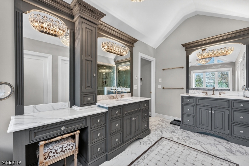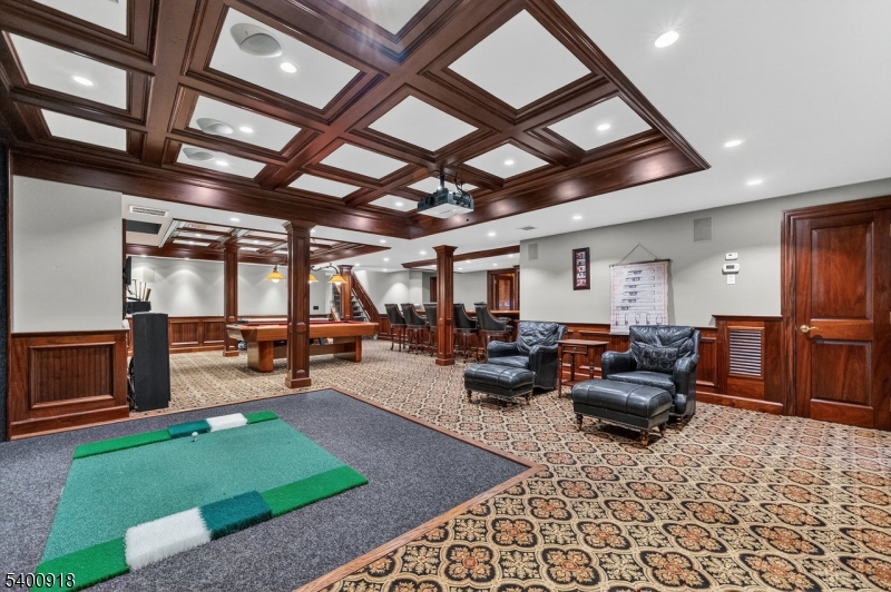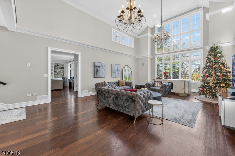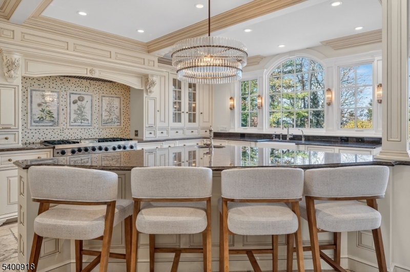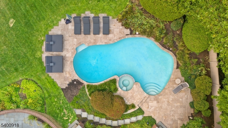 Experience resort-style living in this exceptional North Caldwell residence, where timeless craftsmanship meets modern luxury. A grand marble entry with a sweeping staircase sets the tone, complemented by soaring ceilings, deep moldings, gleaming hardwood floors, and a richly appointed mahogany library. Built with steel beam construction and surrounded by lush landscaping, water features, and mature gardens, this home radiates quality inside and out. The handcrafted Canterbury-design gourmet kitchen is a true showpiece with premium materials and thoughtful detailing, opening to a bright, year-round solarium. Upstairs, the impressive primary suite includes a spa-like bath with an oversized shower and soaking tub, while all additional bedrooms are ensuite and generously sized. The finished lower level is an entertainer's dream featuring mahogany millwork, a wine cellar, professional bar, FULL SWING GOLF PRO simulator, projection screen, exercise room, and abundant storage. Step outside to your private oasis with a custom in-ground pool with hot tub, tranquil koi pond, multiple patios, an outdoor BBQ kitchen, and beautifully landscaped grounds. Offering unmatched luxury and lifestyle, this home delivers Montclair-style living with low North Caldwell taxes just 17 miles to NYC and minutes to trains, dining, parks, and more. A rare opportunity not to be missed. GSMLS 4001059
