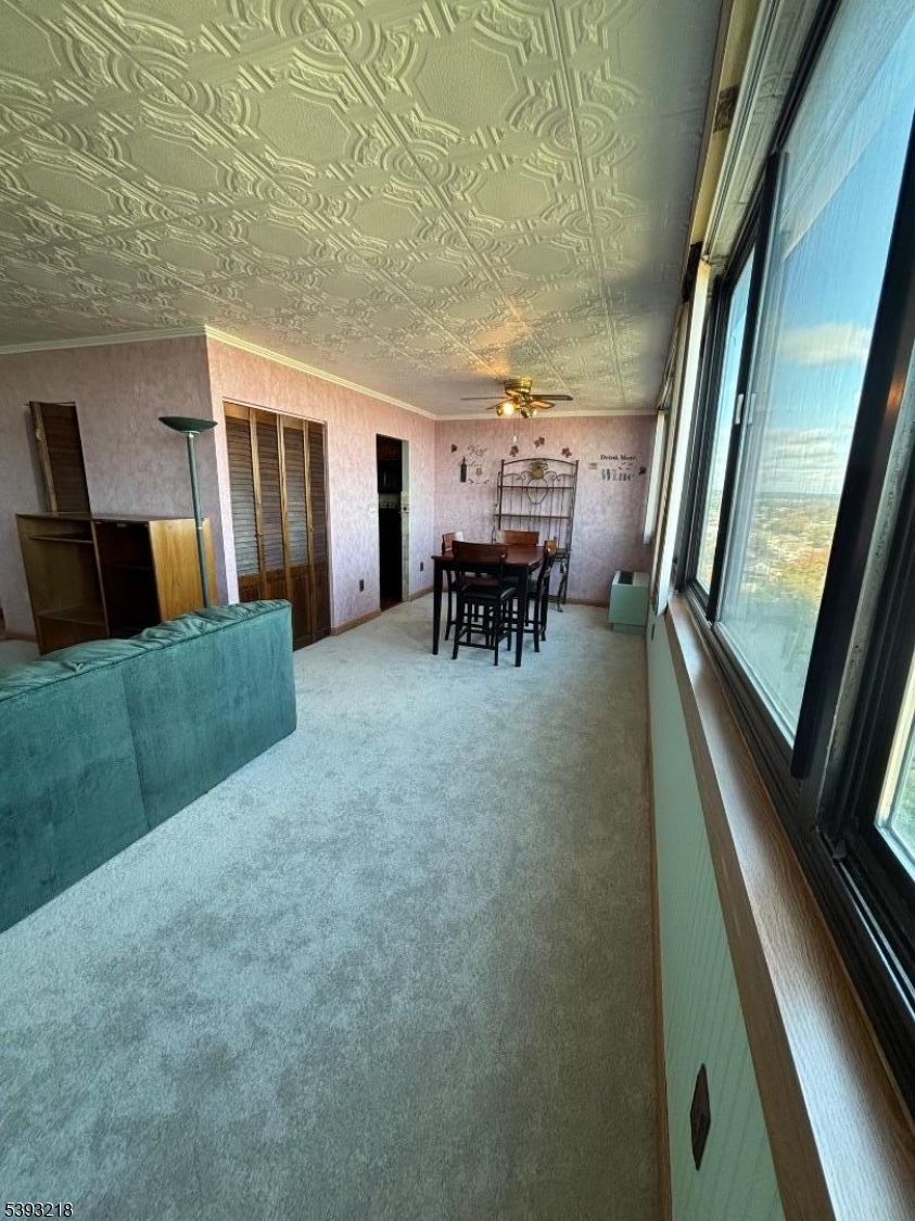 This spacious and sun-filled 1-bedroom, 1-bathroom condominium is now for sale in the prestigious Presidential Tower Building.in Passaic Park. The open-concept living and dining rooms flow seamlessly into the kitchen, creating a warm and inviting atmosphere, complete with new PTAC heating/cooling units. The building offers numerous amenities to enhance residents' comfort. Including a 24/7 doorman, a well-equipped gym, an indoor heated swimming pool, sauna, and patio perfect for enjoying a cup of coffee or a glass of wine outdoors.Parking is available in a gated lot for $ 20 per month per vehicle. Garage option, depending on availability. The building's convenient location is close to the bus and train stations, shopping centers, schools, the lovely Memorial Park, which features a skating rink during the winter season, and places of worship. The property is in excellent condition and is being sold "as is.", GSMLS 3994557