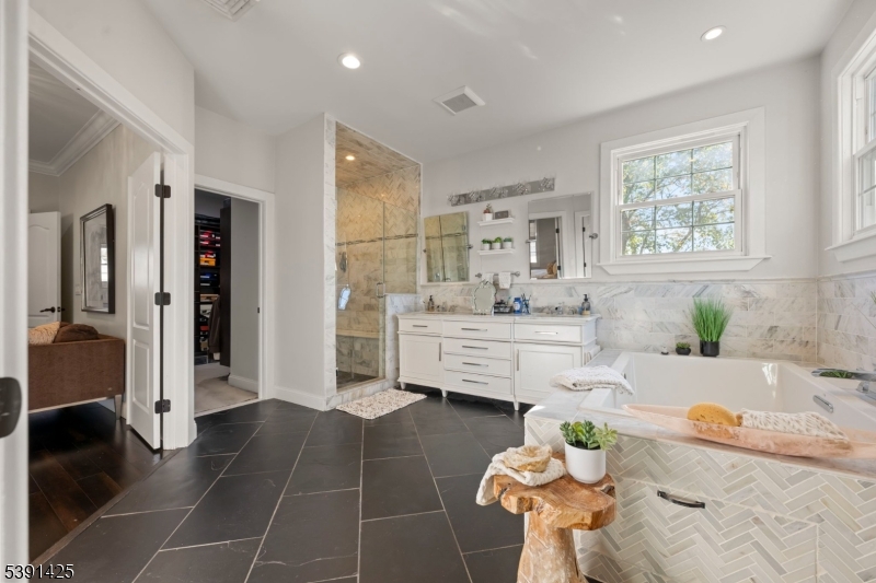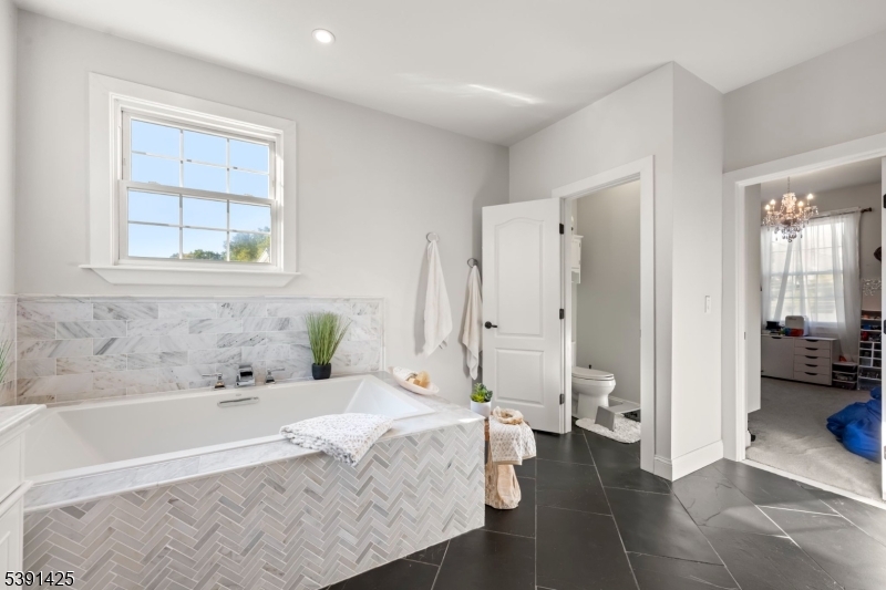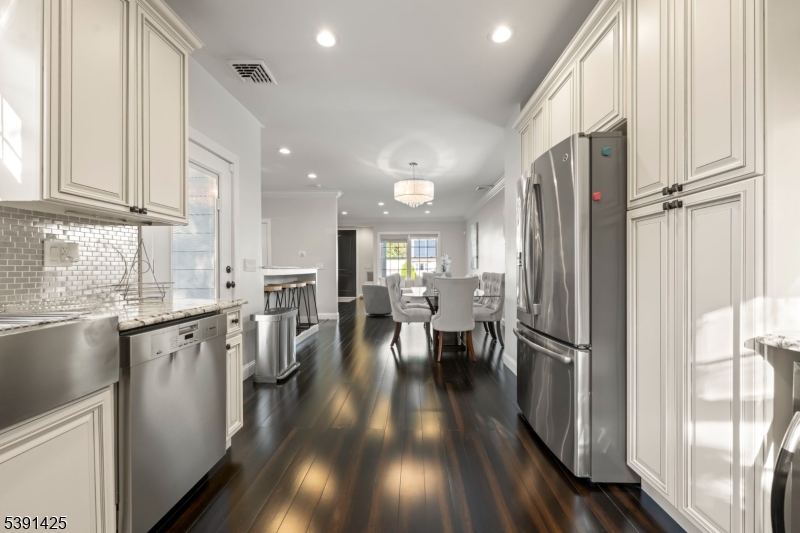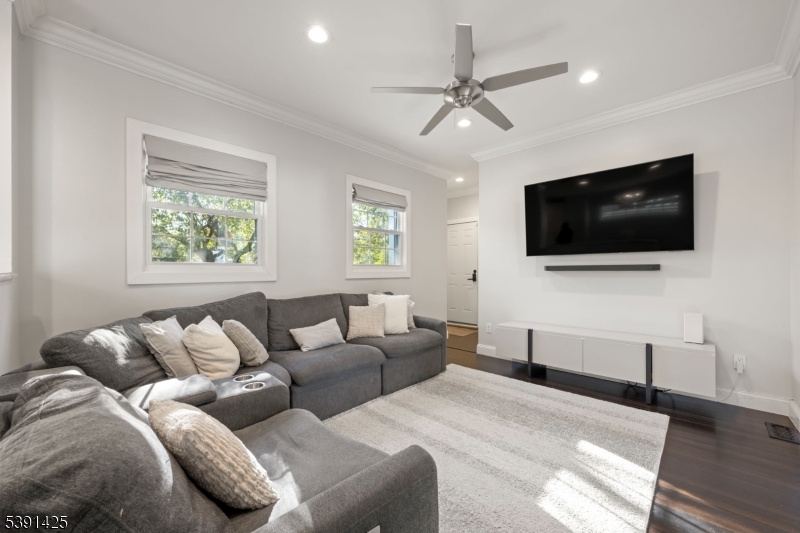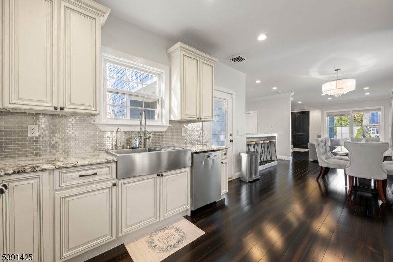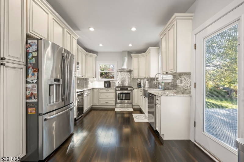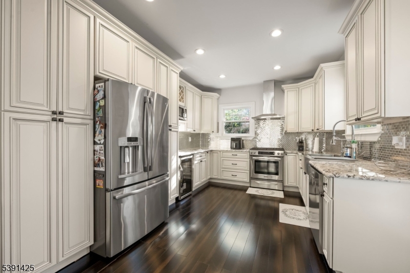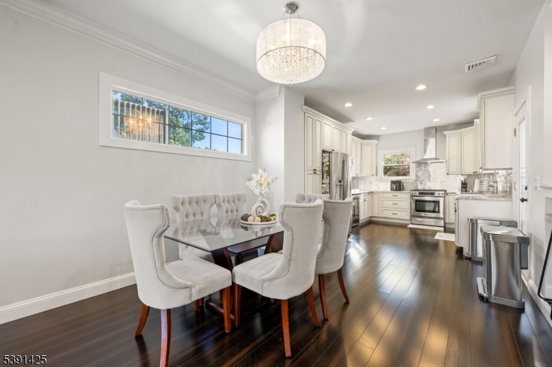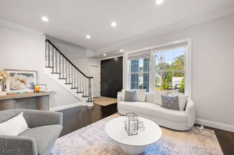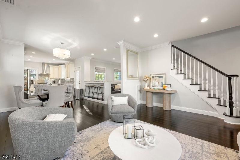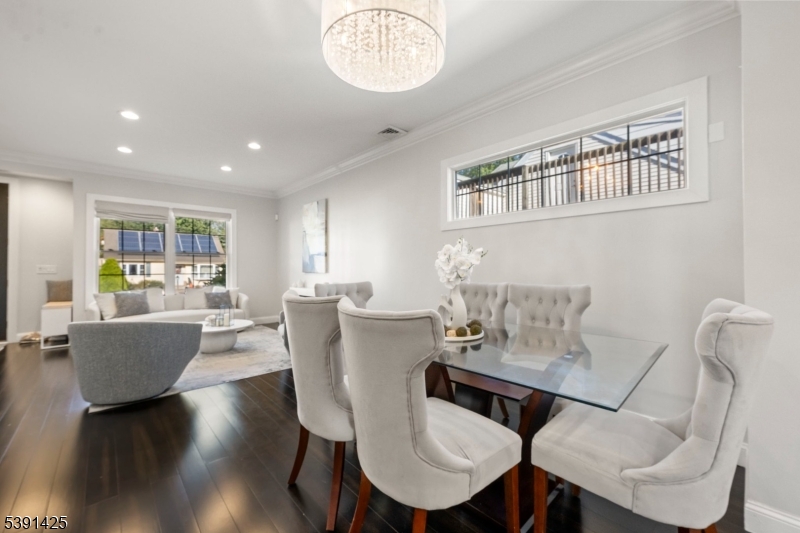 Welcome to this exceptional custom home in Rochelle Park, beautifully remodeled custom home that perfectly blends modern luxury with timeless elegance. This spacious 4-bedroom home, completely updated in 2015, features Pella doors and impressive 9-foot ceilings that welcome you into the formal living and dining area. The kitchen offers granite countertops, S/S appliances, double sink and seamlessly connects to the back deck, providing the perfect setting for entertaining or relaxing. The first floor also includes a large family room, a bedroom, and a full bathroom. Stunning primary suite on the second floor features double solid wood double doors, a luxurious private bath with an oversized deep soaker jetted tub, slate floors, marble counters, and an oversized walk-in shower with a bench. The large rain shower head, body sprayers, and two walk-in closets complete this suite. The basement offers a family room with an open layout and bar, and home office or playroom. Highlights of the 2015 renovation include updated plumbing, heating, and electric systems, a new roof, bamboo wood floors, and crown molding, all complemented by spray foam insulation for efficiency. Located just 20 miles from Manhattan, Rochelle Park offers the best of both worlds. Commuters will appreciate the convenience of NJ Transit buses (routes 163 and 164), providing services to the Port Authority Bus Terminal in Midtown Manhattan. Minutes from Garden State Plaza, restaurants, schools and parks GSMLS 3992973