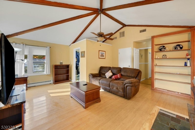 Welcome to this inviting 4 Bedroom, 2 Bath ranch-style home in the sought-after White Meadow Lake community of Rockaway. Enter through the welcoming library or den into a spacious single-floor layout designed for comfort and convenience. The open kitchen and dining area feature a breakfast bar, newer appliances, pantry, skylight, and sliders leading to a two-tiered deck overlooking the expansive backyard, which is perfect for entertaining, relaxing outdoors or enjoying the seasonal lake views. The primary bedroom includes a private full bath, while the versatile fourth bedroom offers vaulted ceilings, a wood-burning fireplace, built-in shelving, and a walk-in closet, also ideal as a family room, guest suite, or home office. Enjoy year-round comfort with a brand-new Navien 3-zone gas heating system, an inviting front porch, and an oversized two-car garage providing ample parking and storage space. The large basement offers excellent additional storage, even though it cannot be finished, it's ideal for seasonal items, sports equipment or a small workshop. Just two blocks from one of White Meadow Lake's three private beaches, residents enjoy resort-style amenities including a members only country club, beaches, pools, tennis and pickleball courts, playgrounds, and sports fields. Experience lake living at its best, with recreation, dining, and shopping all nearby. GSMLS 3994297