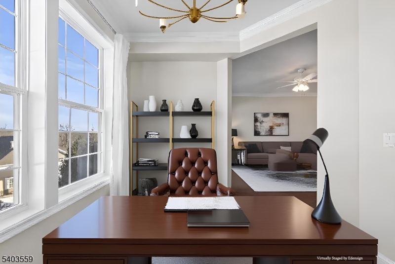 Refined third-floor Kittatinny model offering a sun-filled, open-concept layout with freshly painted interiors, soaring ceilings, and elegant crown molding throughout. The living and dining areas feature hardwood flooring and open to a covered balcony, creating a seamless indoor-outdoor retreat. A private den or study adds flexibility and sophistication to the living space.The kitchen is beautifully finished with granite countertops, stainless steel appliances, a breakfast bar, and generous cabinetry. The primary suite serves as a serene escape, complete with a sitting or dressing area, walk-in closet, ceiling fan, and plush carpeting. The spa-inspired en-suite bath features ceramic tile flooring, granite vanity, and an oversized shower. Additional conveniences include a tiled laundry room, powder room, and one assigned garage space with opener and storage.Residents enjoy an exceptional Greenbriar 55+ resort lifestyle, featuring elevators, elegant lobby spaces, clubhouse, fitness center, indoor and outdoor pools, tennis and bocce courts, scenic walking trails, and a full calendar of amenities, all just minutes from shopping and dining. One or more images have been virtually staged to show potential use of space. GSMLS 4003290