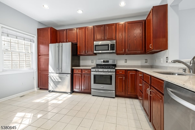 Beautiful townhome in elegant community, The Eagle Rock. A 2 bedroom, 3 full bath and 1 half bath home offers 2 BRs w en suite baths, primary boasts stall shower, double sink vanity, and loads of closets. Bedroom 2 bath hosts shower over a tub. A full size washer & dryer adds convenience to this level. Main level provides living room with dramatic cathedral ceiling and gas fireplace, dining room, eat in kitchen and powder room, access to attached garage. Sliding doors from the living room lead to a spacious deck to relax on overlooking lush private greenery. Finished walk out grade level boasts family room/guest room with tile floor, full bath, shower over tub and another patio area from the glass sliding doors. Amenities include a community pool and tennis courts. Quiet low key setting, great location in the community. Well managed property, beautiful landscaping, a wonderful place to live, convenient to stores, shops, transportation to NYC. Landlord requires NTN credit report, 1.5 months security deposit, and first month's rent in advance. Eagle Rock requires 2 year lease. Available immediately. GSMLS 3985486