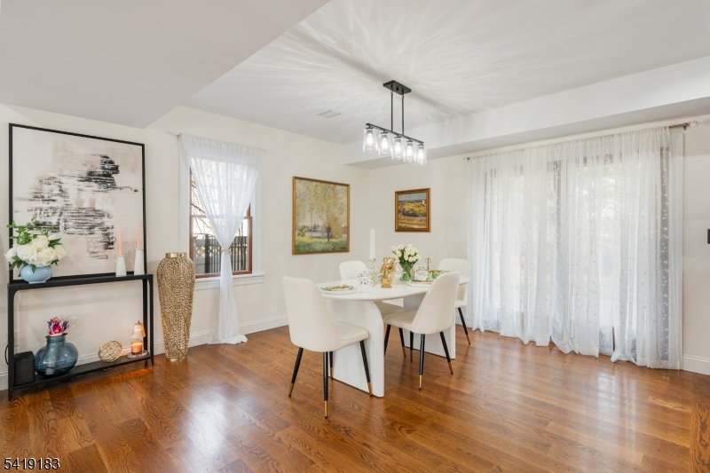 Welcome to 8 Dean Court, a thoughtfully designed contemporary Colonial, offering approximately 2,800 sq ft of living space on a quiet cul-de-sac. This home combines open-concept living with well-defined spaces, creating a layout that is both functional and inviting.The first floor features a double-height entry leading into a seamless flow of living, dining, and kitchen areas. The kitchen is equipped with cherry cabinetry, granite countertops, stainless-steel appliances, and a center island, all complemented by white oak hardwood floors and detailed finishes. A rear entry with mudroom, powder room, and laundry area adds everyday convenience.Upstairs, the primary suite includes spacious closets, cathedral ceilings, and a well-appointed bath with a soaking tub, double vanity, and marble finishes. Two additional bedrooms and a full bath complete the second level, along with an overlook to the entry below.The top floor offers a versatile open space with high ceilings?ideal for additional living, work, or recreational use.Outdoor features include a front porch, rear patio, and paver walkways, along with a detached garage offering additional storage.Located in Rutherford, the property provides access to local shops, restaurants, parks, and public transportation, along with convenient connectivity to major highways and commuter routes.8 Dean Court offers a balance of modern design, functional space, and a well-connected location. GSMLS 4016238