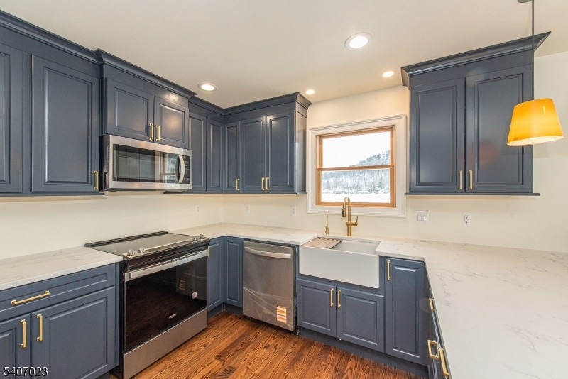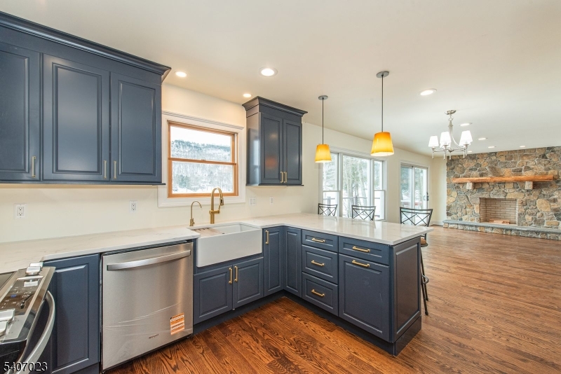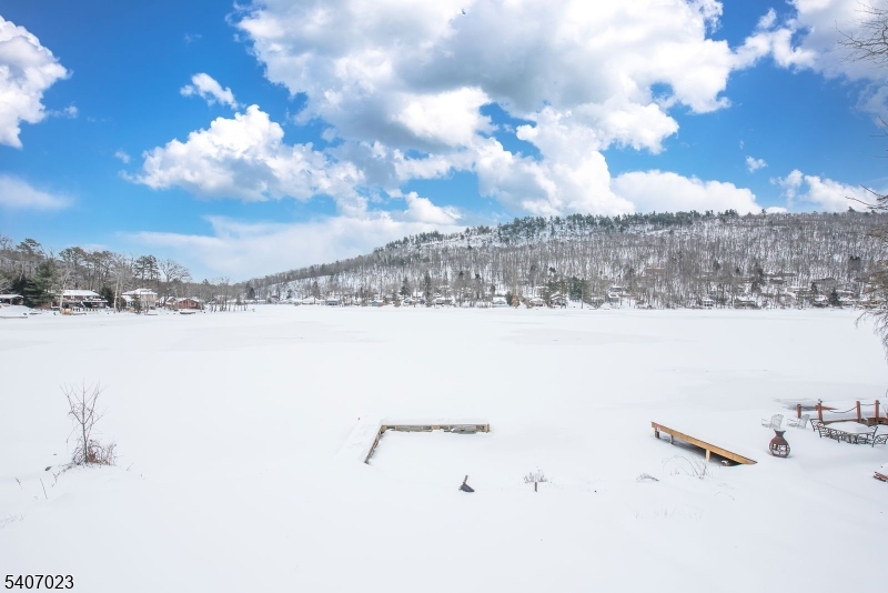 Far from the maddening crowd! This totally renovated, like-new, upscale 2-bedroom Lake House features generous living space with its own dock, deck, and patio perfect for year-round enjoyment. The modern kitchen is equipped with stainless steel appliances, quartz countertops and features a large breakfast bar, amd plenty of cabinets The living room is highlighted by a wood-burning fireplace with stone surround, while the primary bedroom suite offers a full bath, walk-in closet, convenient laundry, and additional space ideal for a home office. Nestled in a peaceful community, Kittiatinny Lake is a private 92-acre lake in Sandyston Township, offering non-motorized boating, fishing for bass and trout, swimming, and hiking. Surrounded by Stokes State Forest and bordering the Appalachian Trail, the setting is both serene and scenic. 30 minutes from ski resorts and golf courses. GSMLS 4006177
