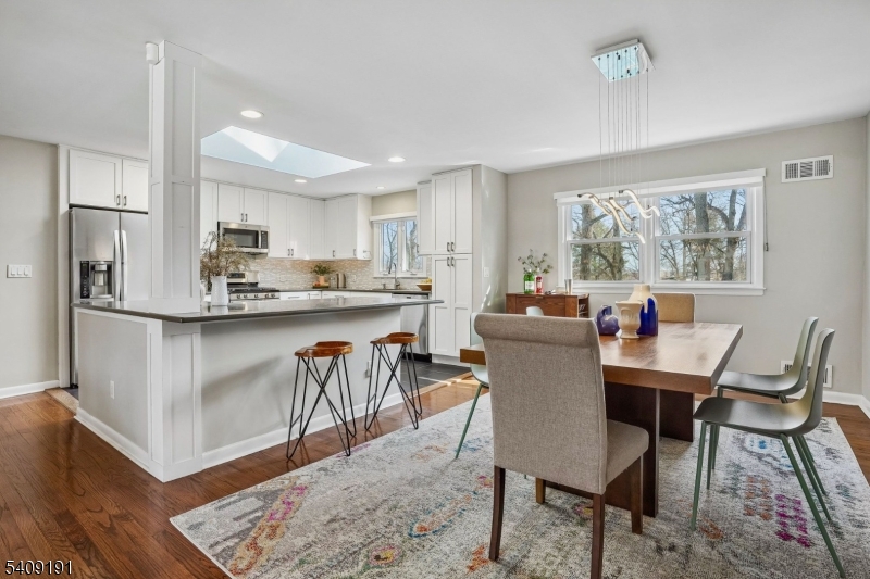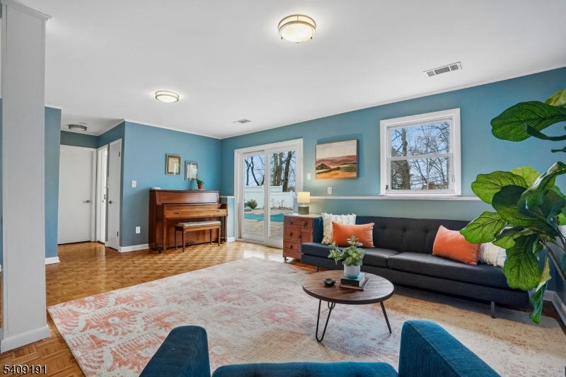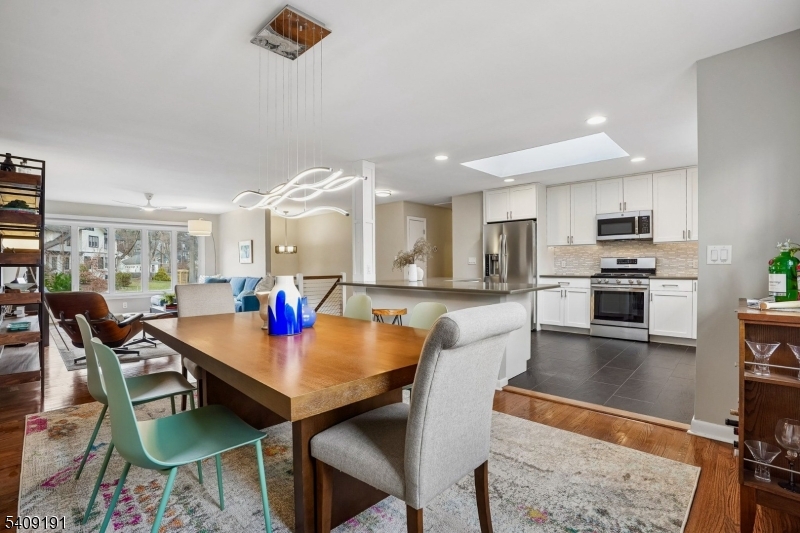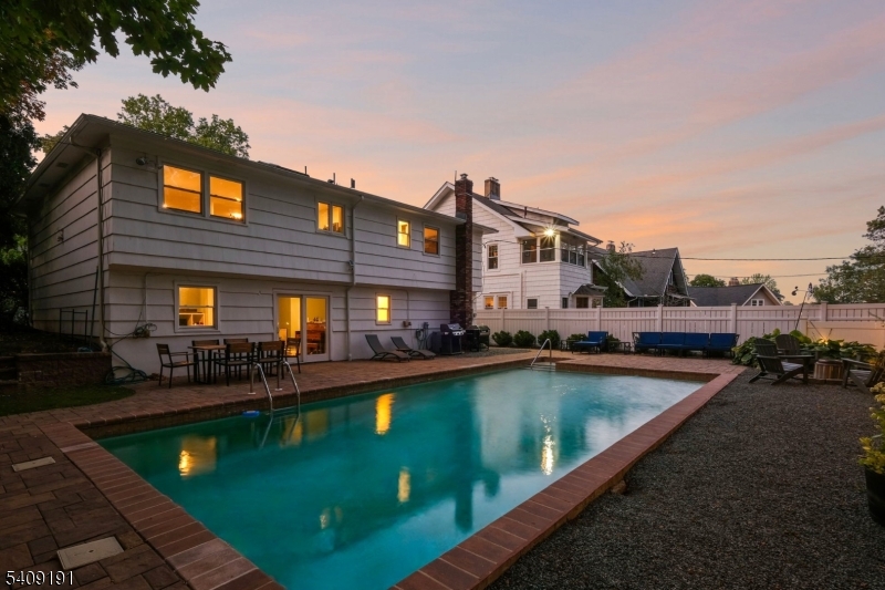 Welcome home to this turn-key 4 bedroom, 3 full bath split-level with mid-century modern vibes, a flexible layout, and an in-ground heated pool, all in a location less than one mile to the South Orange train station and .5 miles from Mountain Station. Clean lines, an open-concept feel, and an easy flow give the home a sense of both function and style, with well-proportioned living space suited to both everyday living and entertaining. The renovated kitchen features quartz countertops, stainless steel appliances, and a skylight that fills the space with natural light, while large picture windows in the living room add to the home's sunny warmth. The main level includes a private primary suite, along with two additional bedrooms and a spacious hall bath. The ground floor level offers an office/fourth bedroom, and a full bath, ideal for flexible living. A family room with sliders opens to the fully fenced patio and backyard pool, providing additional space to relax and entertain. This level also includes a large laundry room with ample storage and access to the attached 2-car garage. Outside, the heated in-ground pool and patio extend the living space with inviting areas to gather, enjoy a swim, share evening BBQs, and unwind around the fire pit under the stars. Located on a quiet cul-de-sac, this home offers convenient access to NJ Transit, downtown South Orange, Flood's Hill, and the neighborhood amenities that make this such an inclusive community. GSMLS 4015001