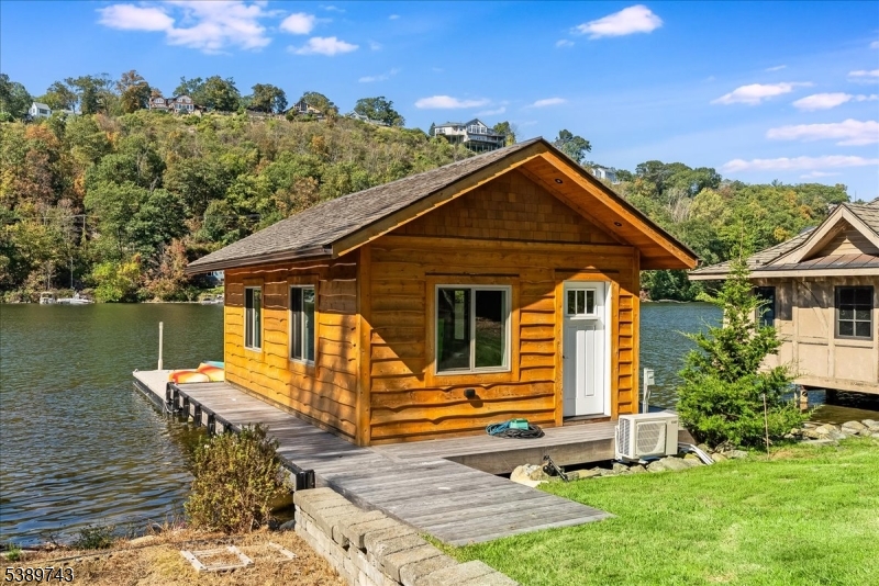 Exquisite Luxury Lakefront home. A rare opportunity to own a premier residence on a private island home to only 34 beautiful lakefront properties. This 5 BR 6.1 BA estate like masterpiece is packed with exceptional quality and timeless design. Set on a sweeping lawn with a large lakefront patio, this home delivers upscale lake living and privacy with its resort style pool, cabana and new boathouse offering direct access to lake adventures. Entertain in style with a new gourmet kitchen featuring a wood burning stone fireplace and french doors that lead out to your outdoor cooking station complete with cooking fireplace and inviting patios. Retreat to the second floor primary suite equipped with a full bath, walk in closet, stone fireplace, sitting room with a covered porch to take in lake views. Spacious second floor office wing with a private bath and separate entrance providing a comfortable and substantial work environment. Greet your guests with a unique bar room off the foyer then step into the rustic living enjoying wonderful lake views and gather around a cozy fireplace. The finished basement includes an exercise room, full bath with a seam room and wine storage. A lifestyle unmatched just an hour from Manhattan. GSMLS 3991458