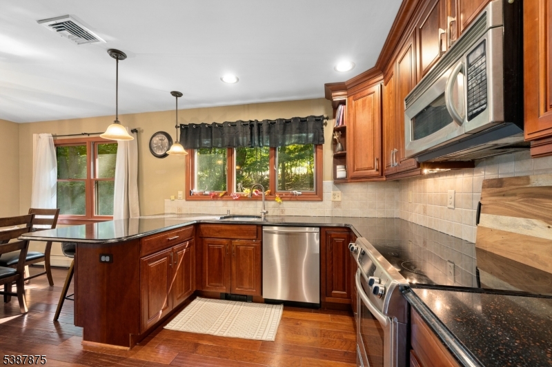 Welcome to this turn key home located in the beautiful town of Vernon. Easy access to Rt 23 for commuting. This gorgeous home has 3 bedrooms, 3 bathrooms (ensuite in primary) and an office that can be used as another bedroom. Kitchen has beautiful granite counters with all new appliances (2022) and hardwood flooring. Living room has window looking out to the mountains, fireplace and new floors with a valuted ceiling! Family room has a fireplace with new wood burning insert that heats the entire home, new floors and sliders out to a stunning deck/patio with included gazebo in a very private setting. Central Air! Large shed with electric. New Washer & Dryer 2022! New Septic 2022! New Roof 2022! Owned Water Softner. Pride of ownership in this home is evident. GSMLS 3989735