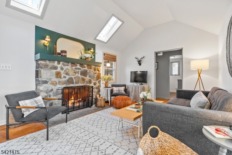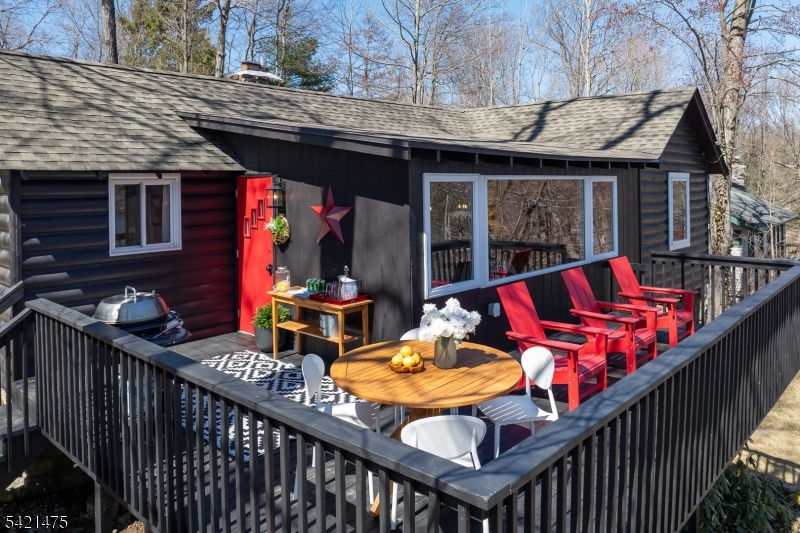 Awaken to spectacular sunrises from this chic, designer cabin in sought-after Highland Lakes. Set on a wooded, double-deep .36-acre lot with dual street frontage (Canadawa), this stylish home delivers cozy sophistication and expansive lake views. Access the lake from either direction leaving the home from two nearby freeways! Start your mornings with sunrise yoga on the expansive east-facing deck. Inside, modern elegance meets rustic charm with two inviting bedrooms and a sleek, updated bathroom. Relax and unwind in the beautifully appointed living area, ideal for cozy winter evenings by the stone hearth. Step outside to discover your own enchanting Path Henge, perfectly aligned for memorable summer sunsets. Gather around one of two fire ring areas and enjoy friendly competitions on the level area perfect for bean bag toss. Keep your beach toys and garden tools stowed out of sight in the unfinished basement or detached storage shed. Enjoy outdoor recreation year-round with private access to five pristine lakes, seven sandy beaches. Activities for all interests and ages; sailing, racket sports, hiking, fishing, swimming, art, music, play group and more. Winter sports are a short drive away at Mountain Creek. With furnishings available separately, this turnkey retreat promises effortless enjoyment. Roof replaced in 2020, Passing Septic Report from 2025 - move in with confidence and embrace lake community living at its finest! GSMLS 4018186